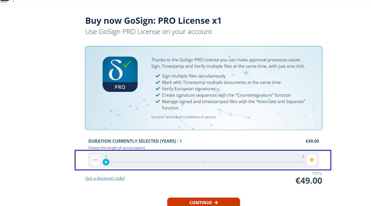 You can choose the license package that best suits your needs, then click on Continue to go the purchase configuration page.