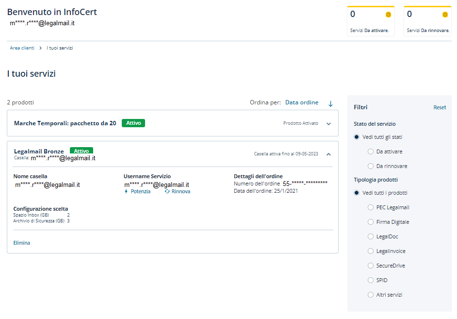 E' possibile considerare concluso il processo di rinnovo nel momento in cui si riceve la fattura di InfoCert relativa al pagamento del servizio.