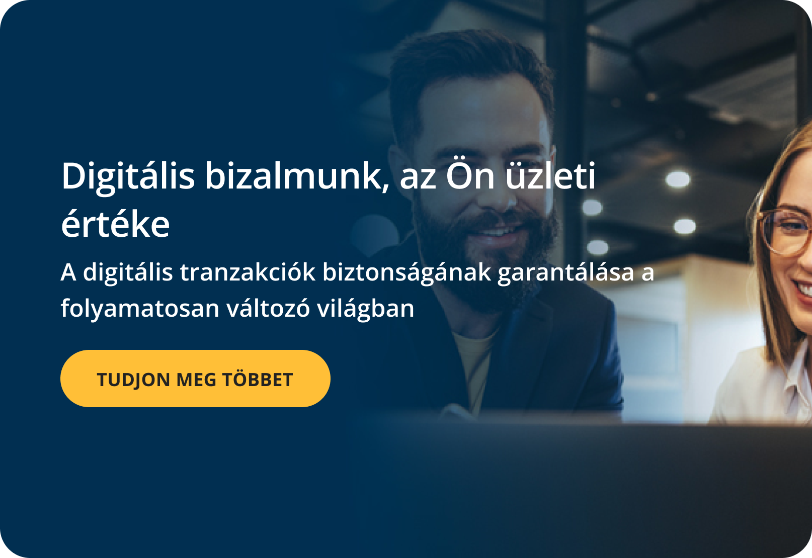 Digitális bizalmi megoldásainkkal biztosítjuk az ügyfelekkel való interakciókat. Használja ki a digitális átalakulás nyújtotta összes lehetőséget, és fejlessze vállalkozását.