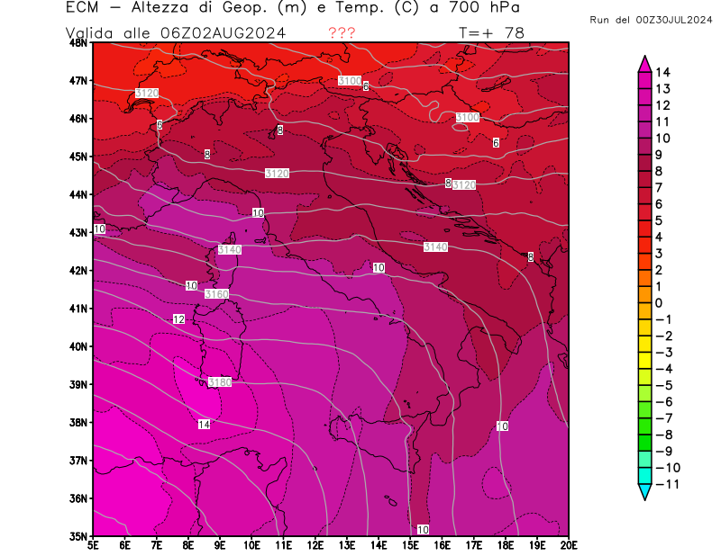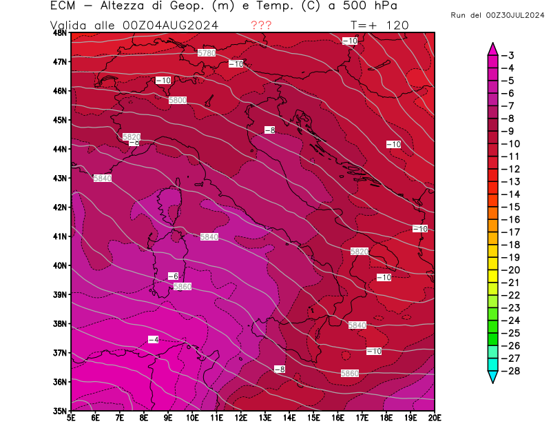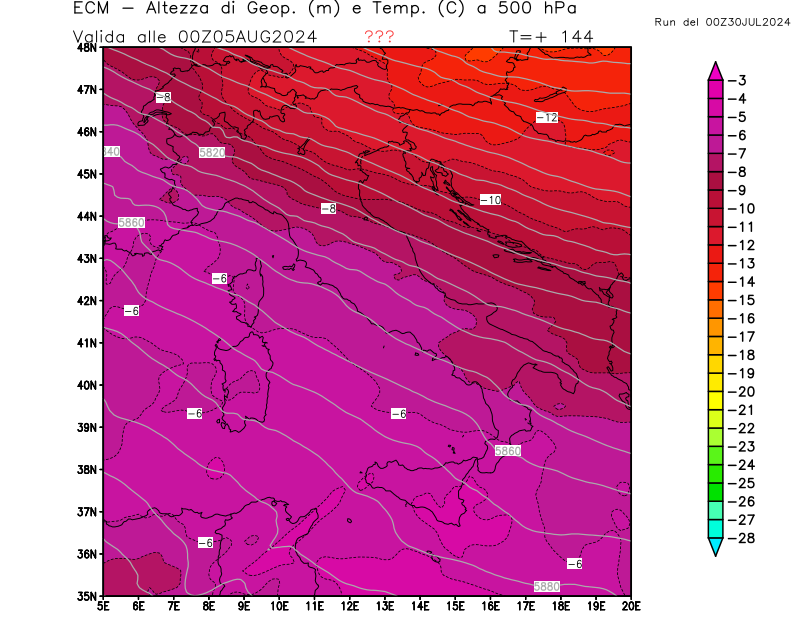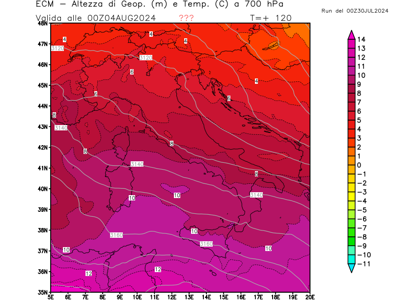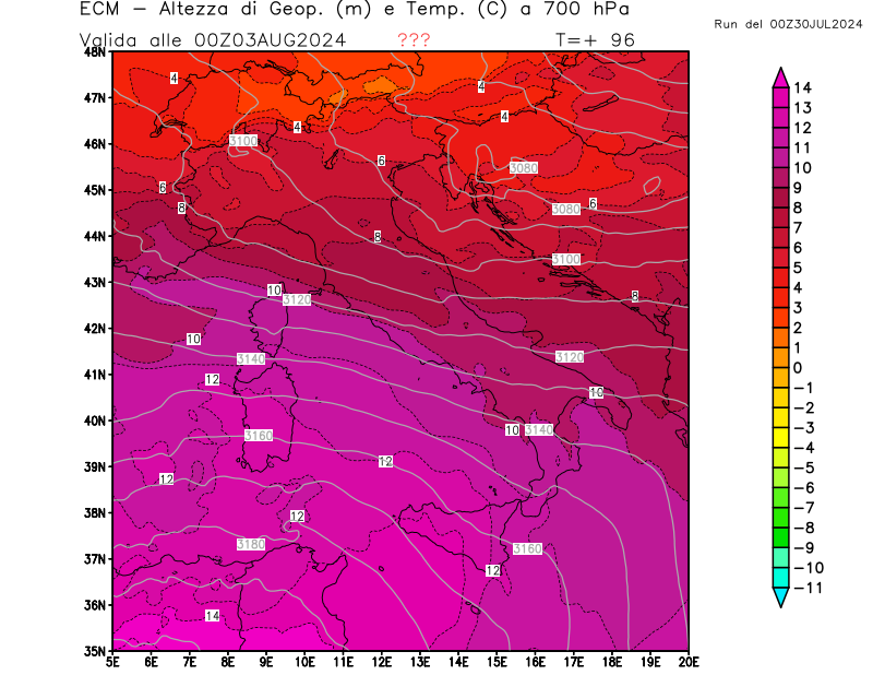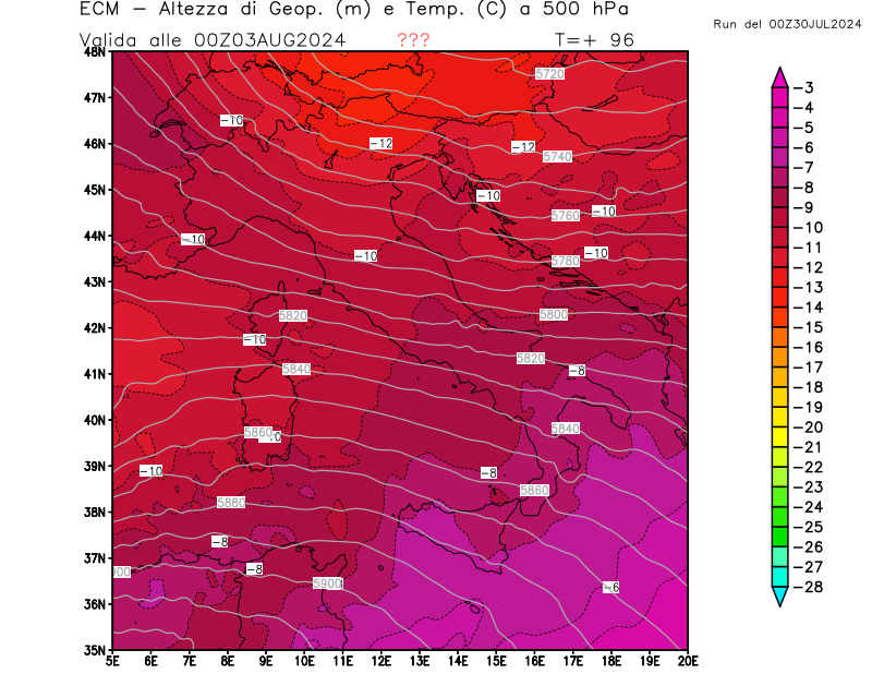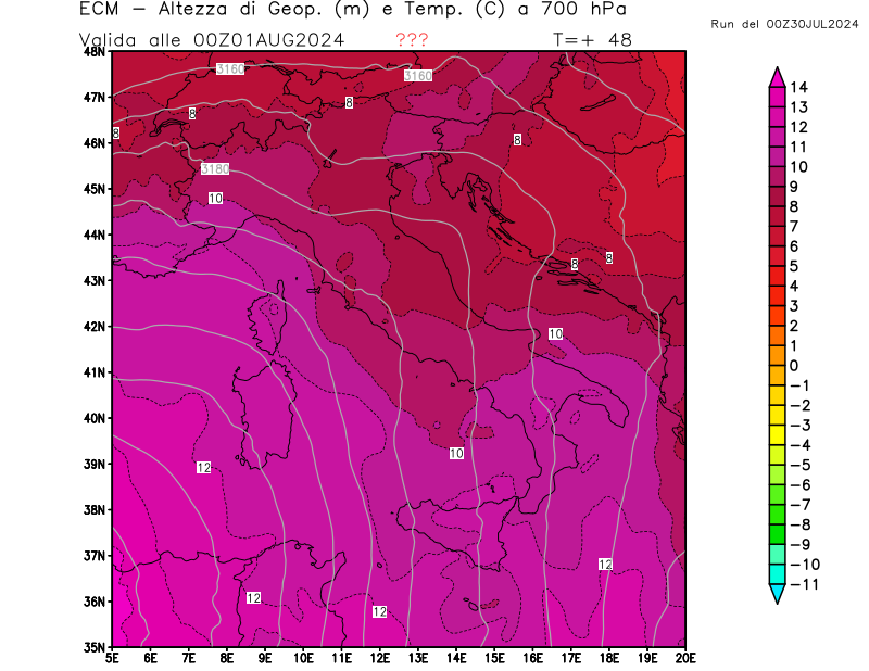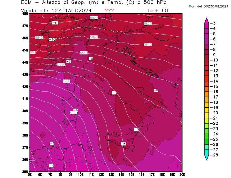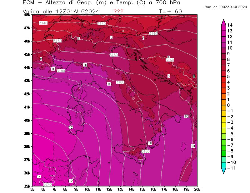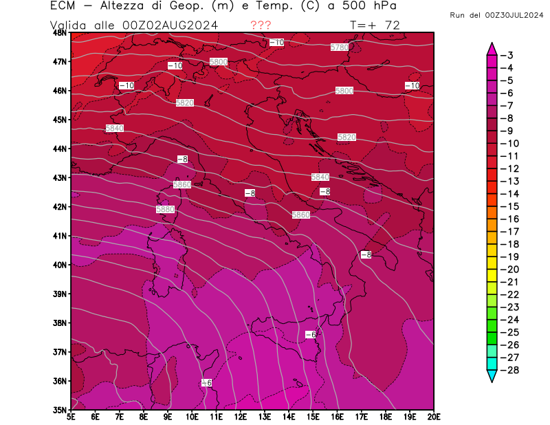 Italia - run 00 UTC di ECMWF per 3bmeteo.com