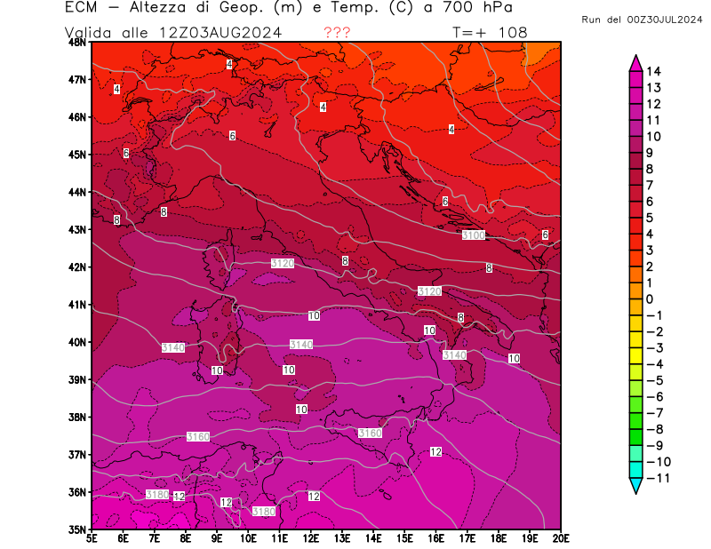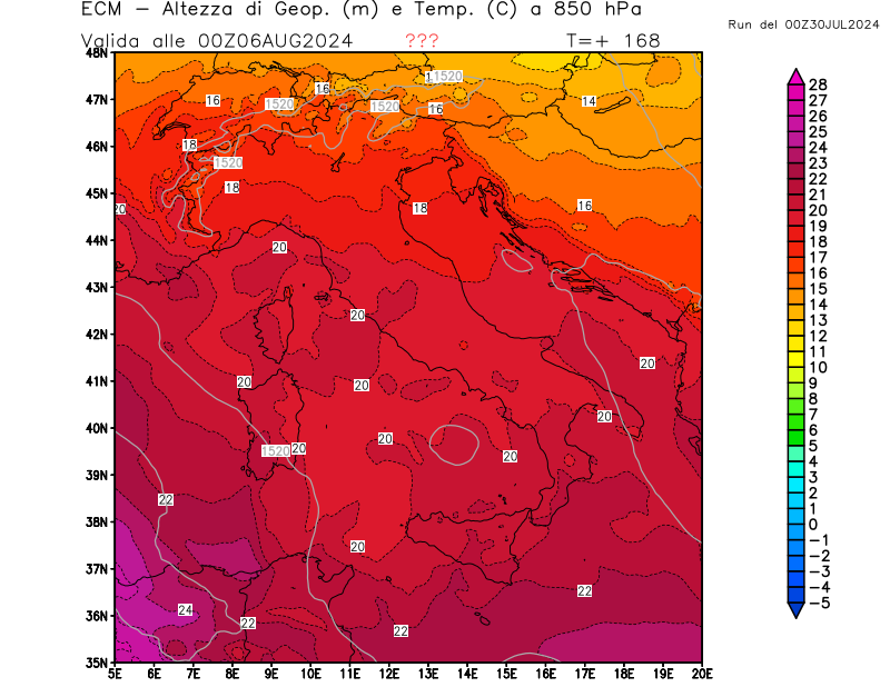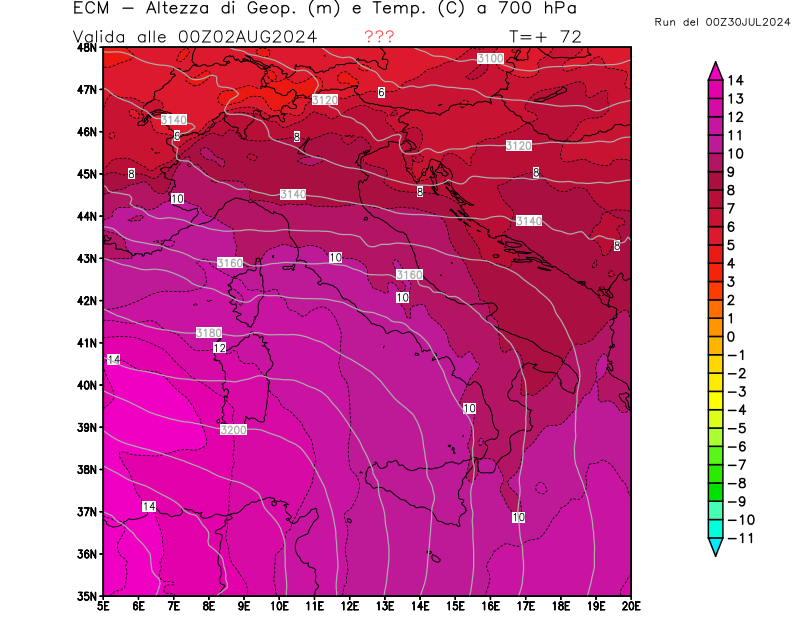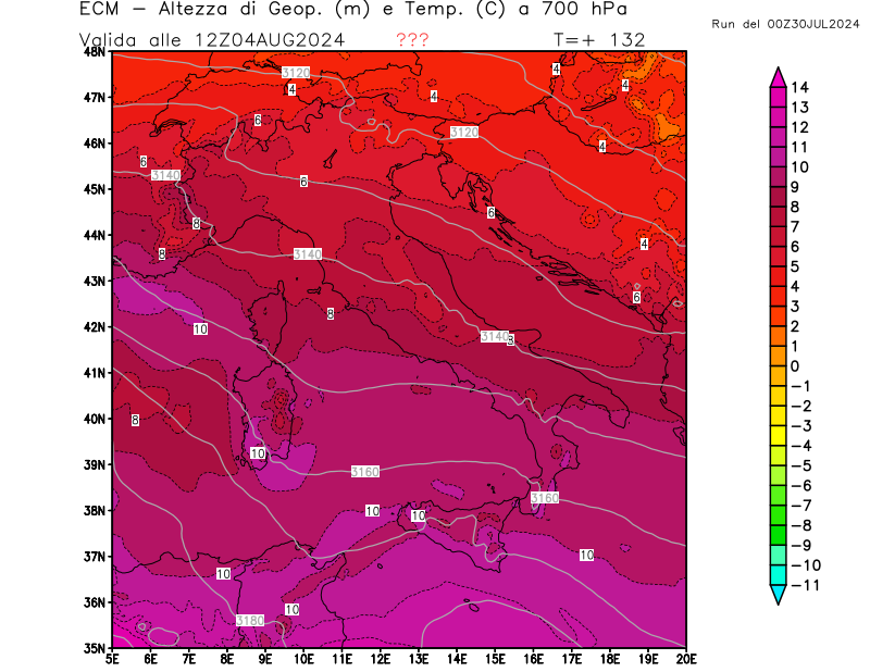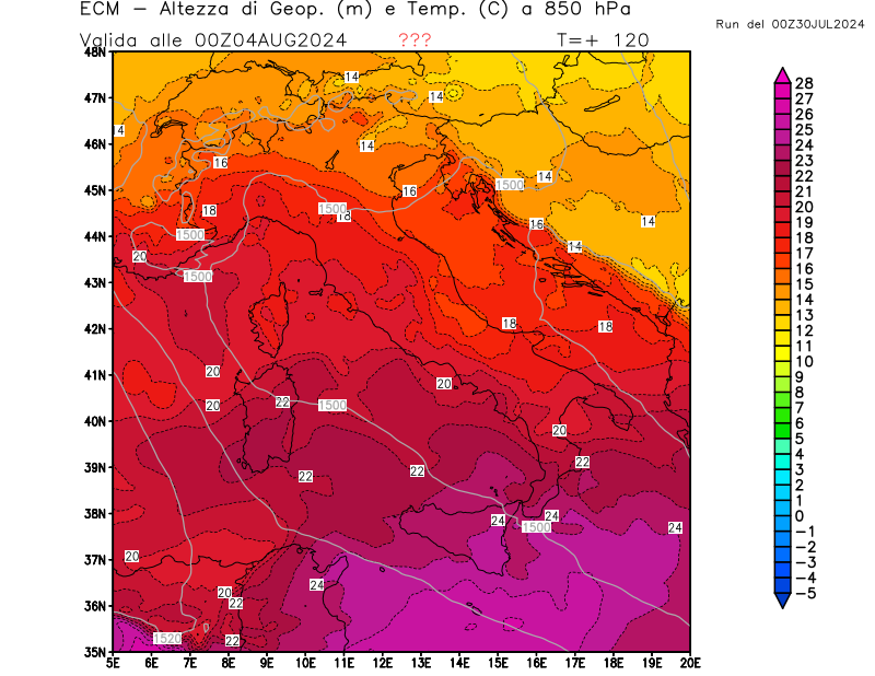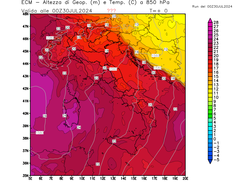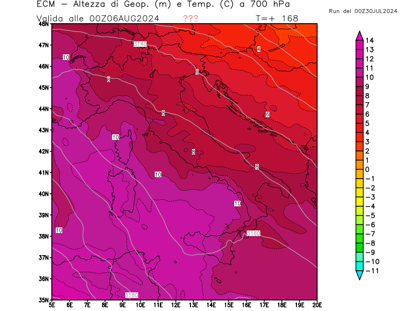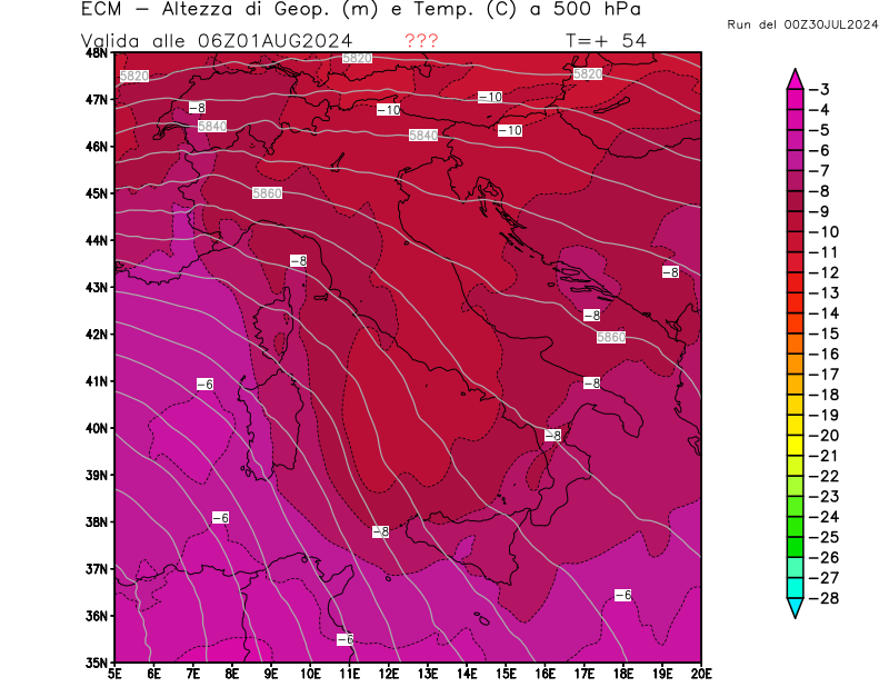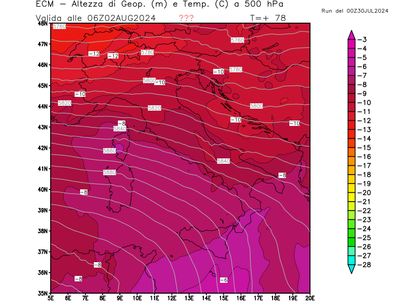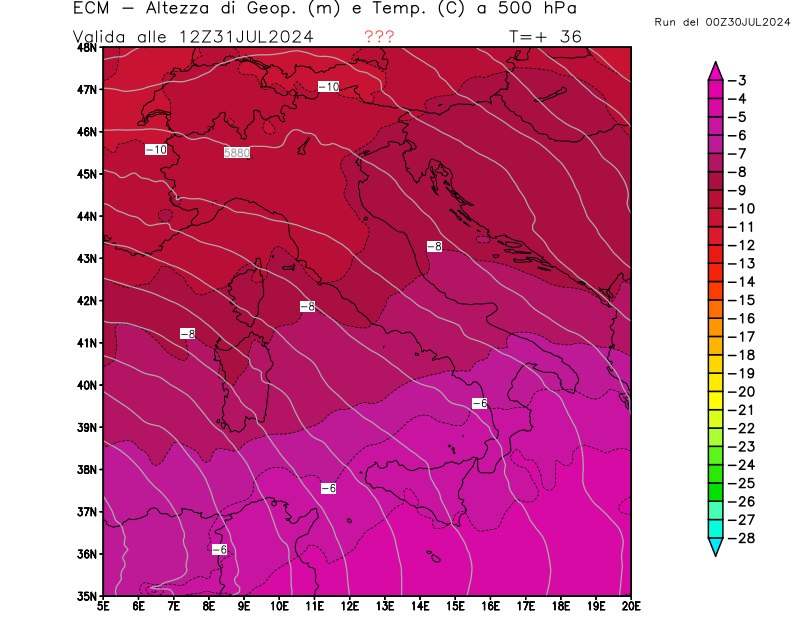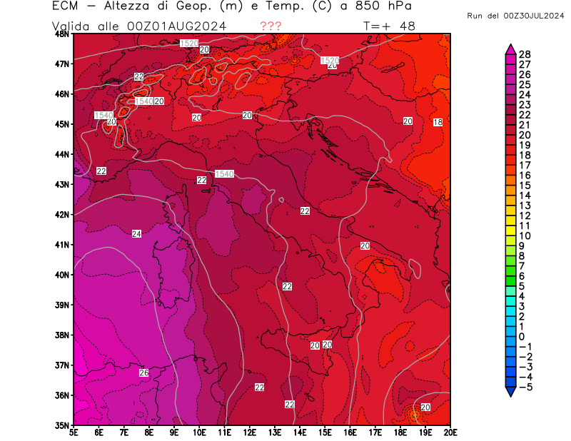 Italia - run 00 UTC di ECMWF per 3bmeteo.com