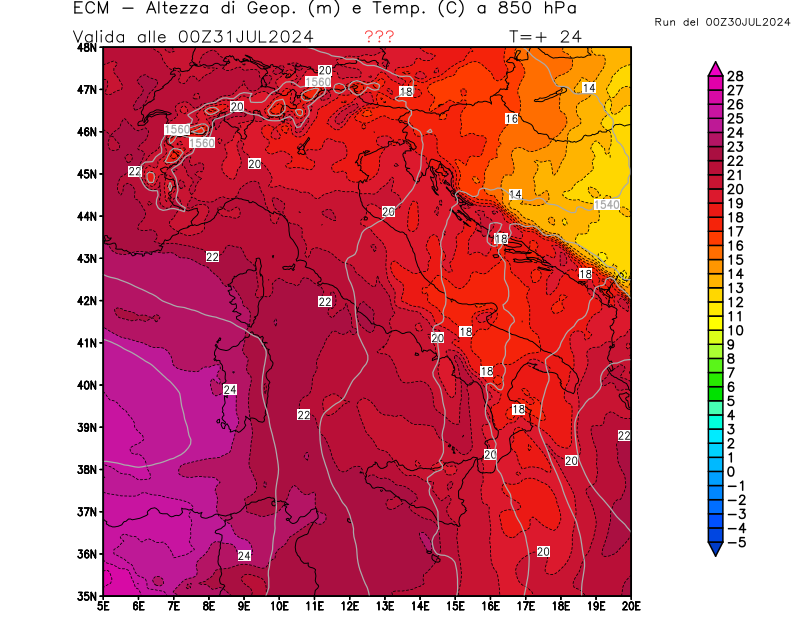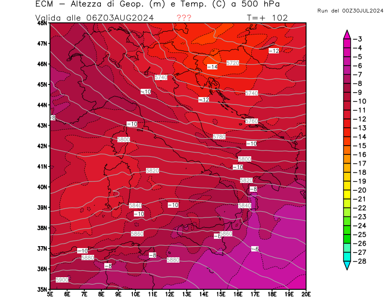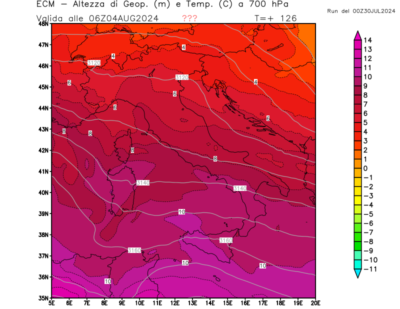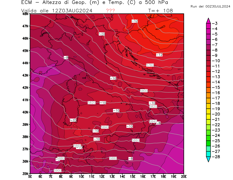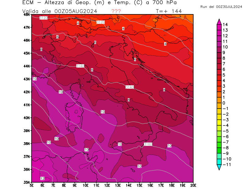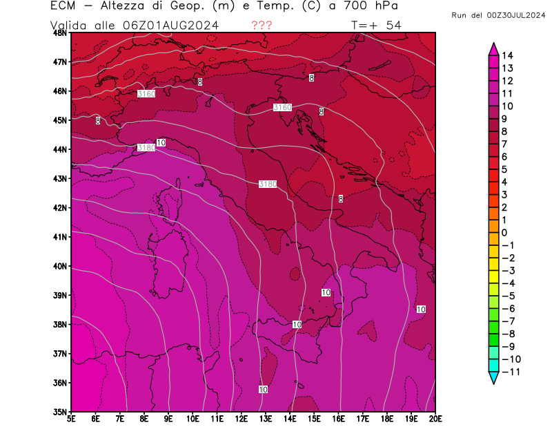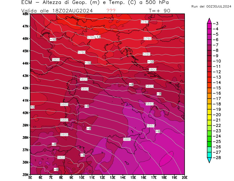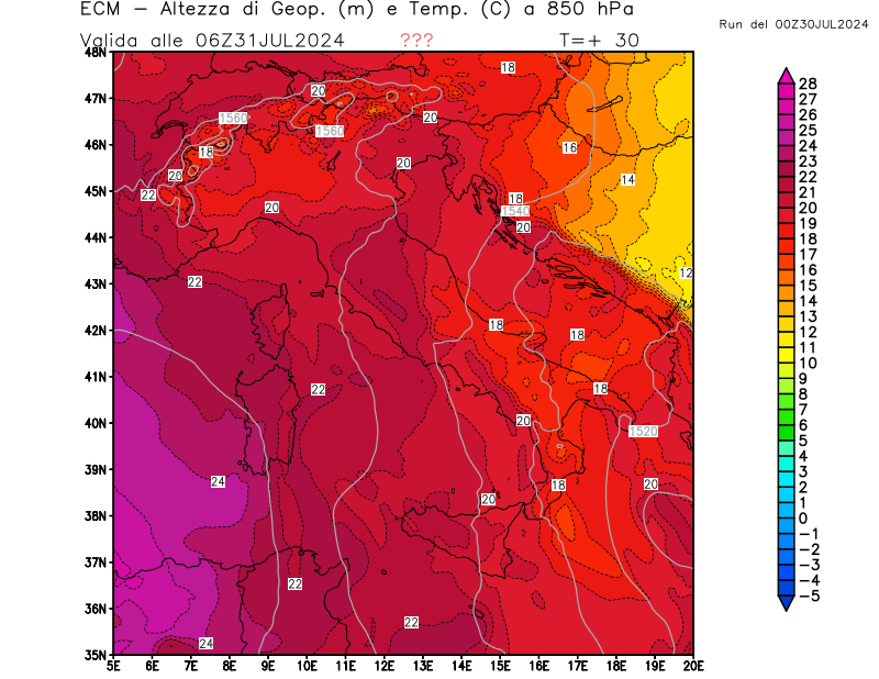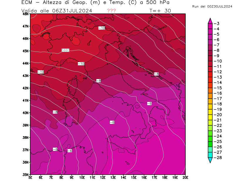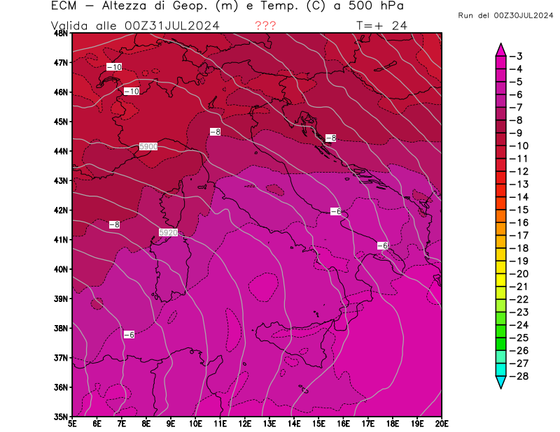 Italia - run 00 UTC di ECMWF per 3bmeteo.com