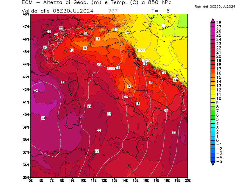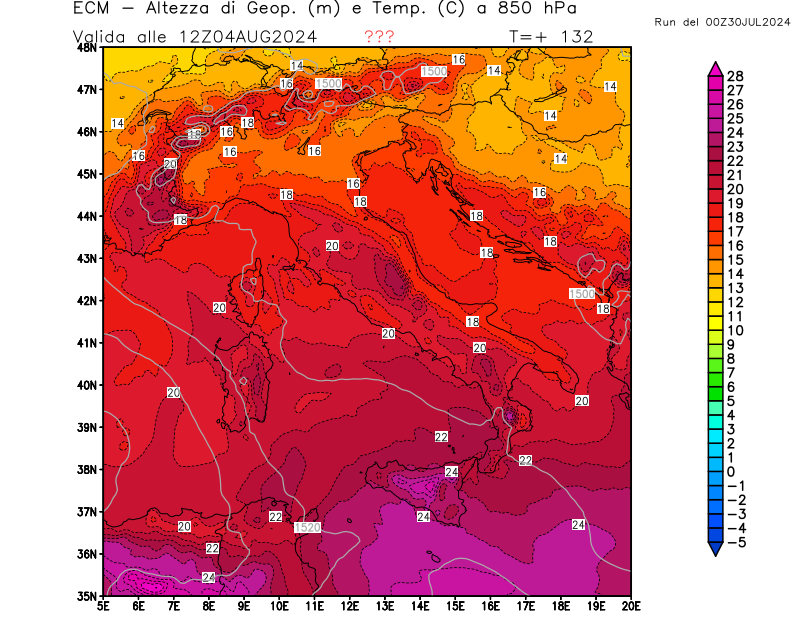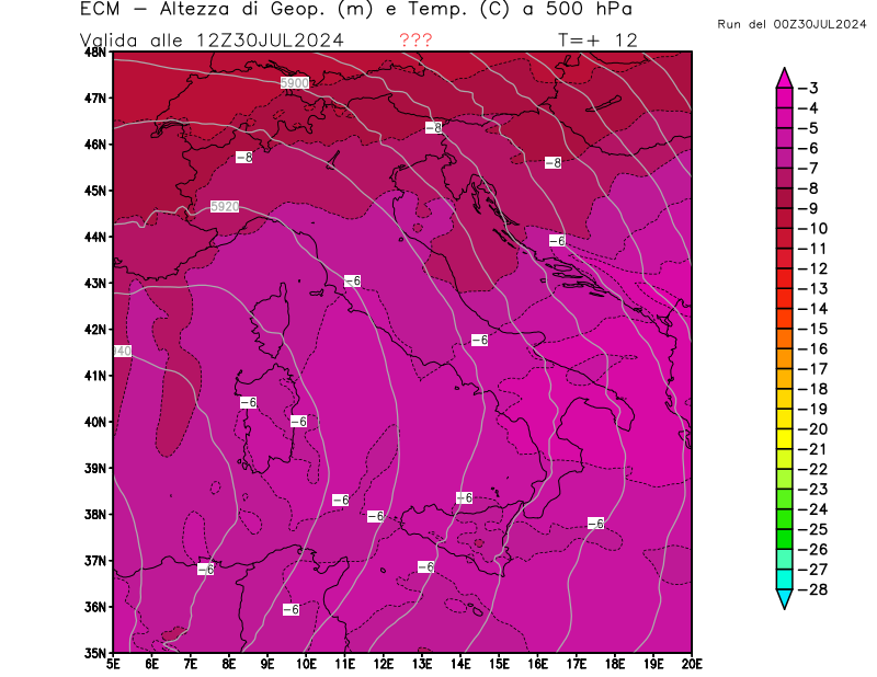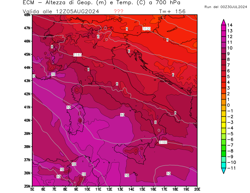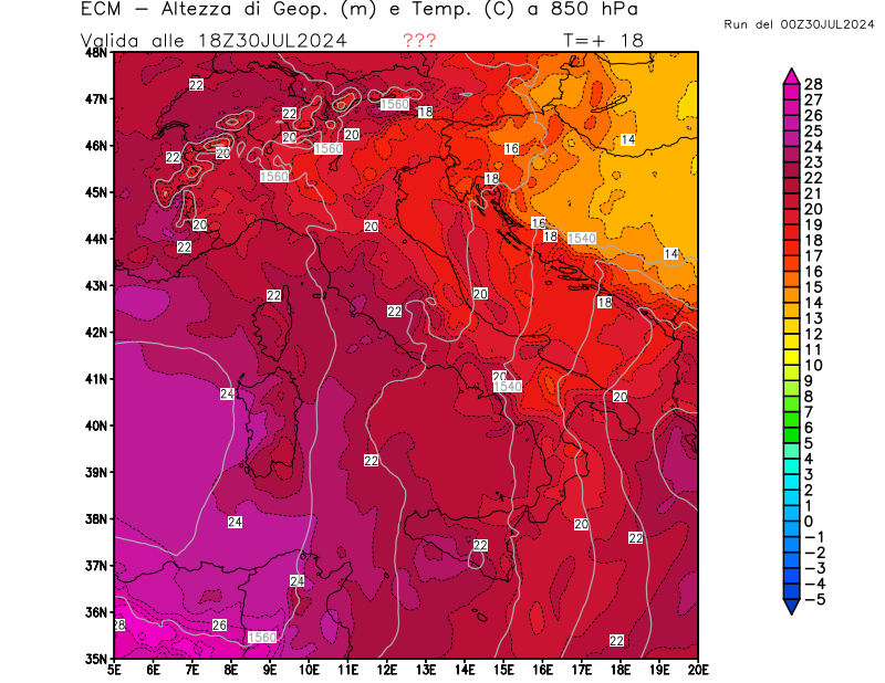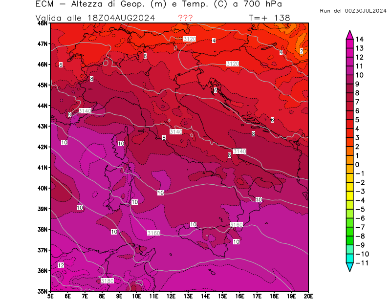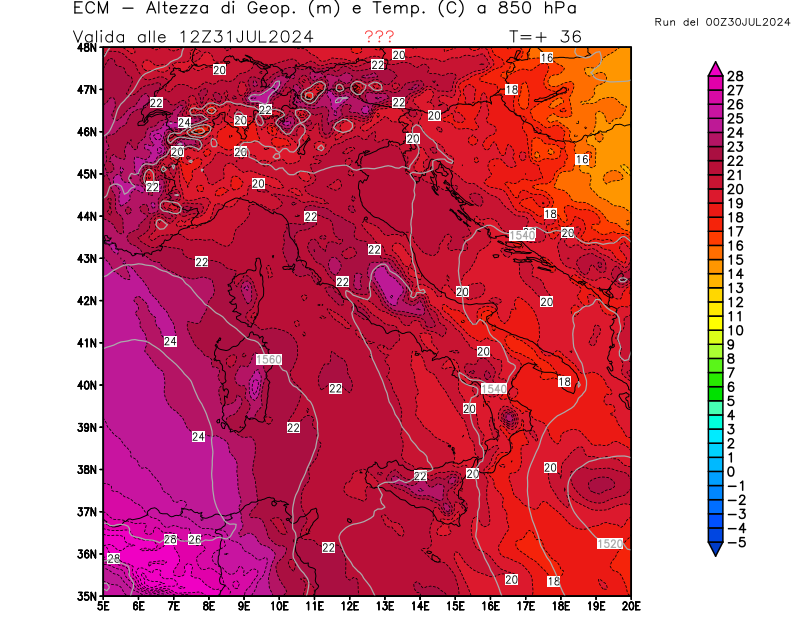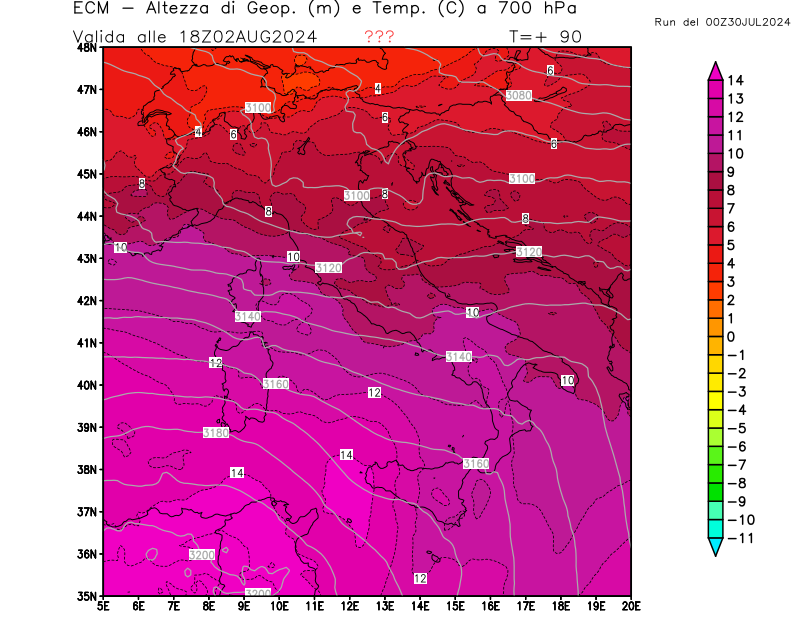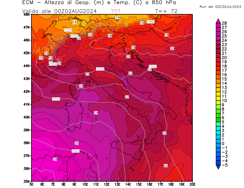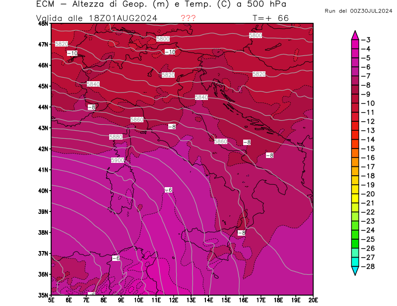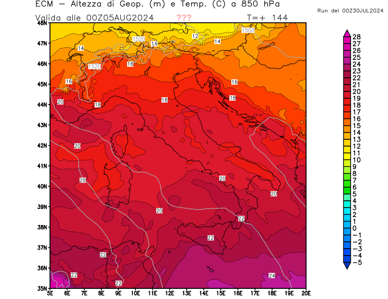 Italia - run 00 UTC di ECMWF per 3bmeteo.com
