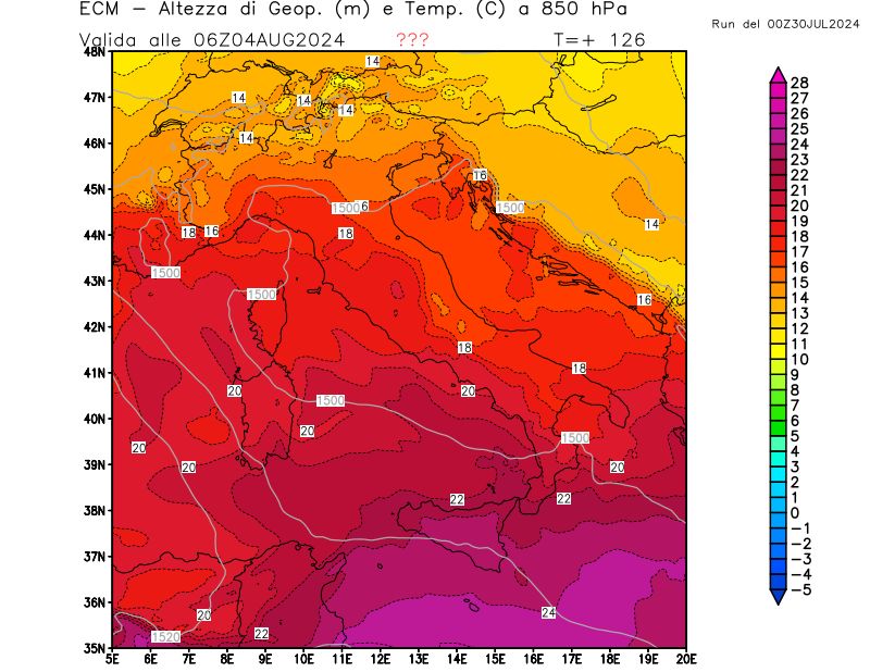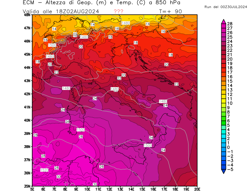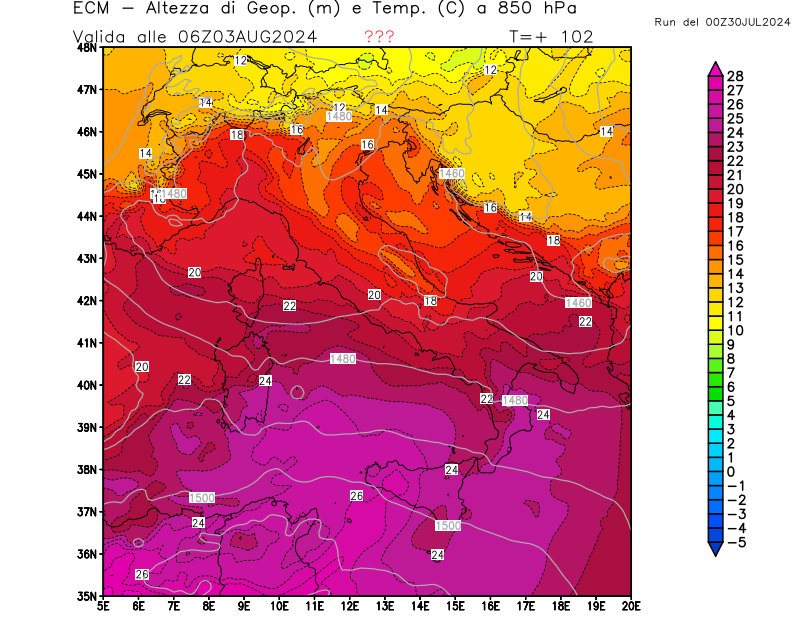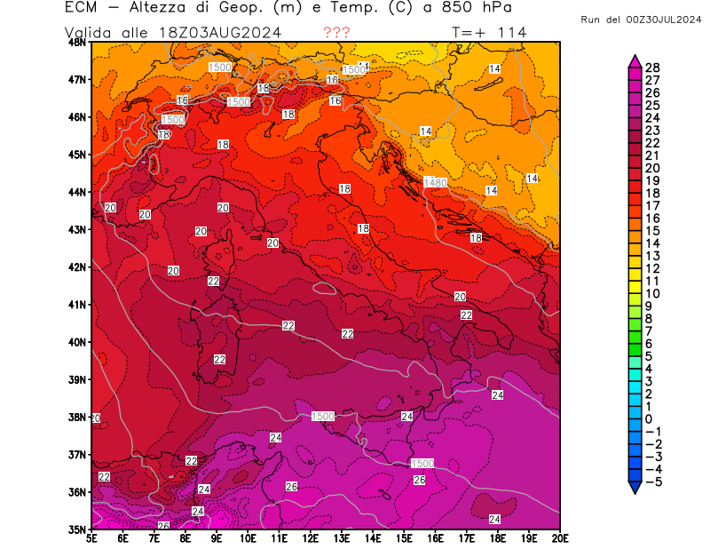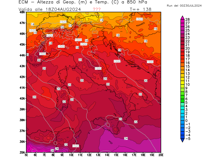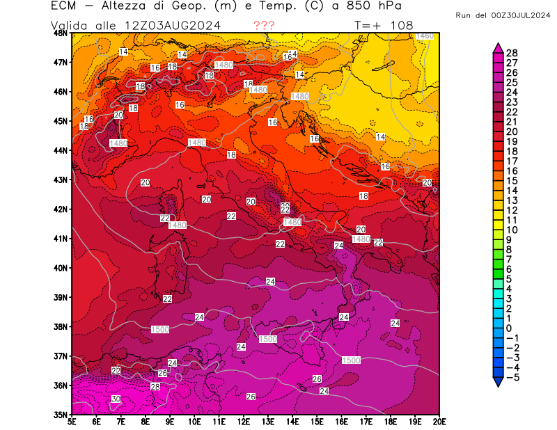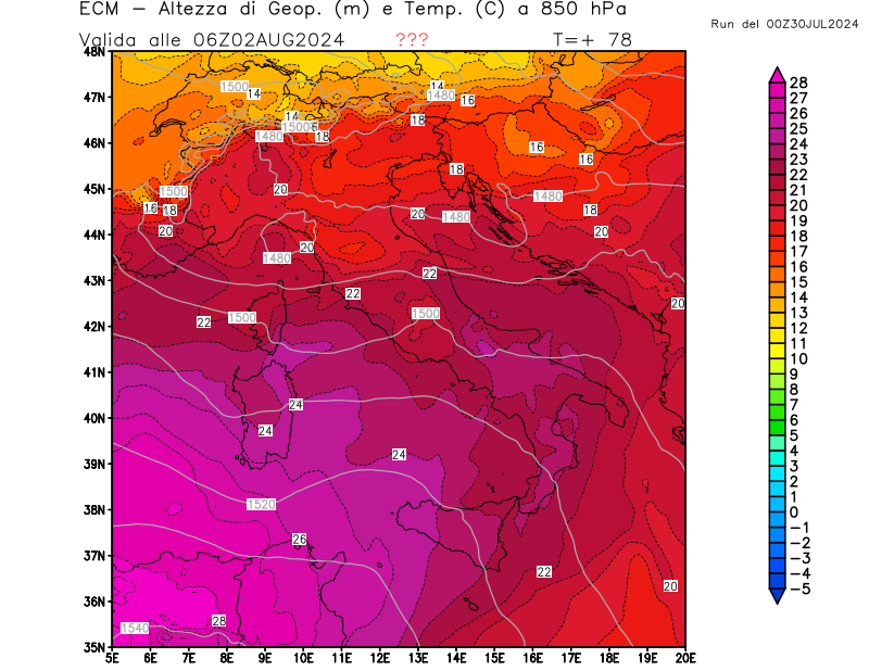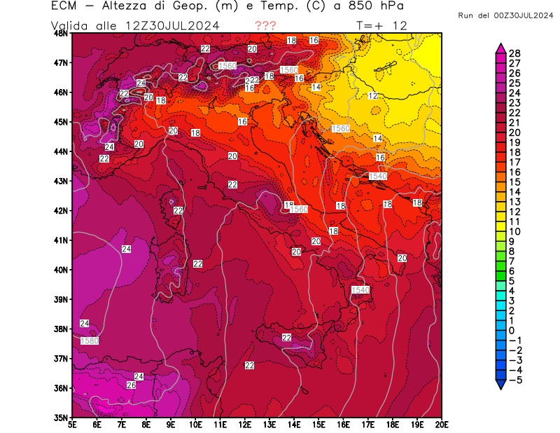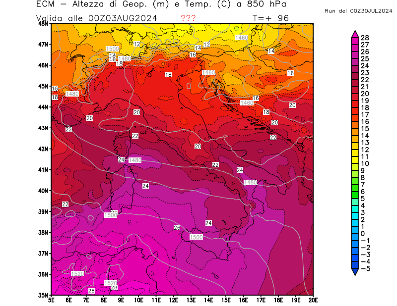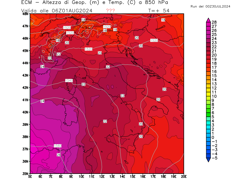 Italia - run 00 UTC di ECMWF per 3bmeteo.com