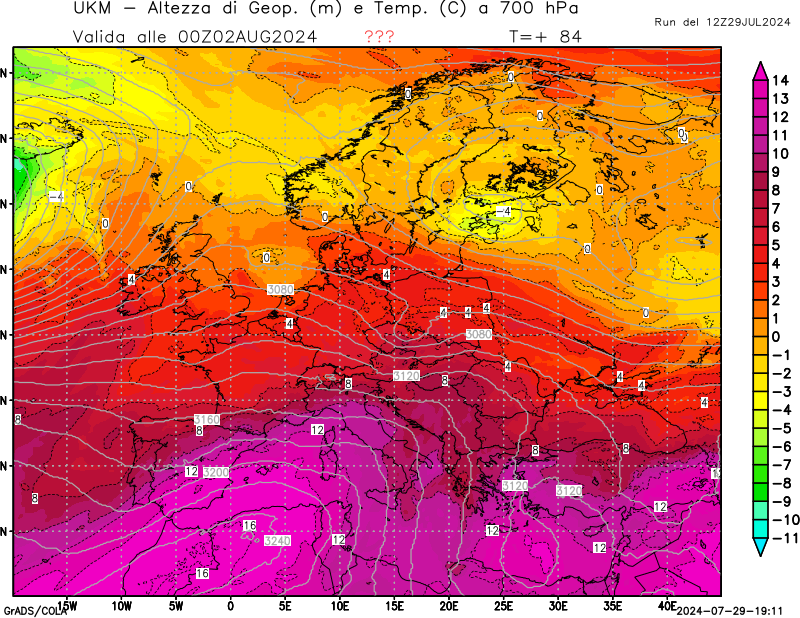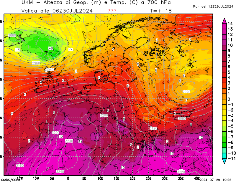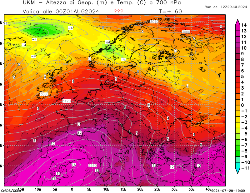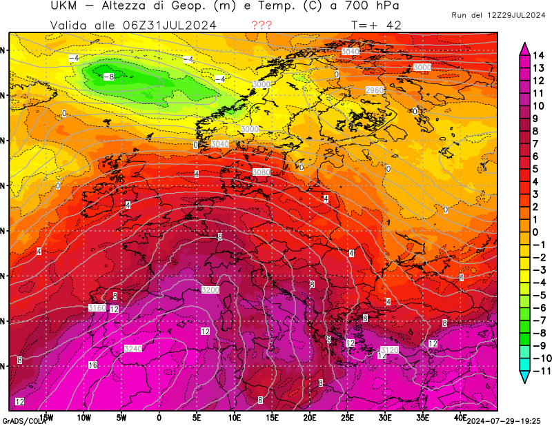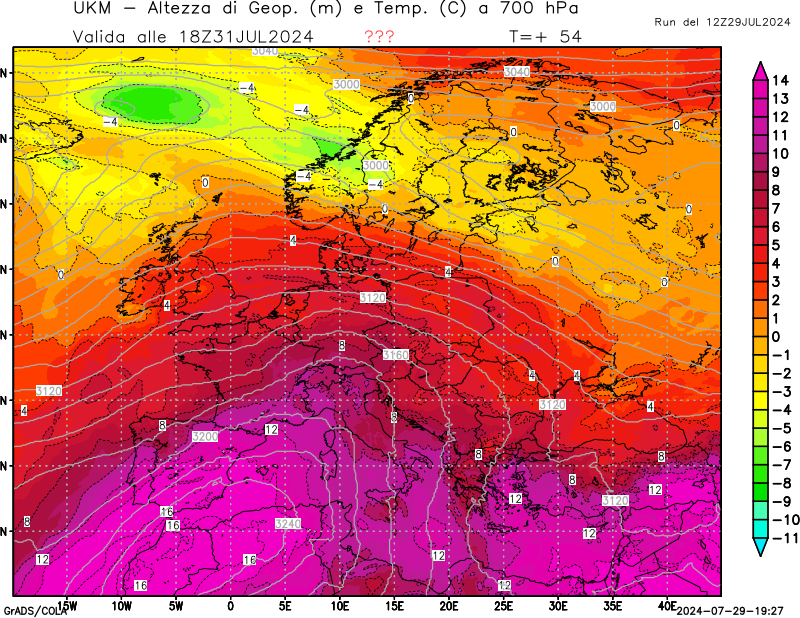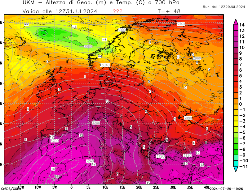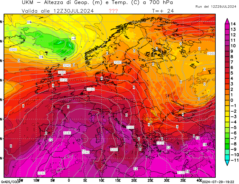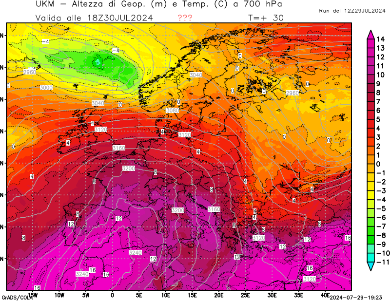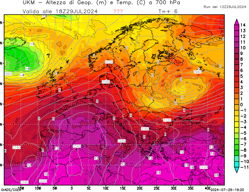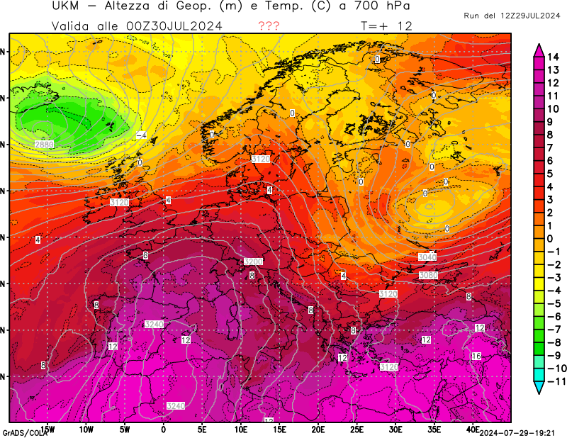 700 hPa, geopotenziale e temperatura