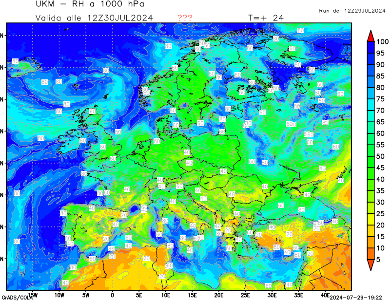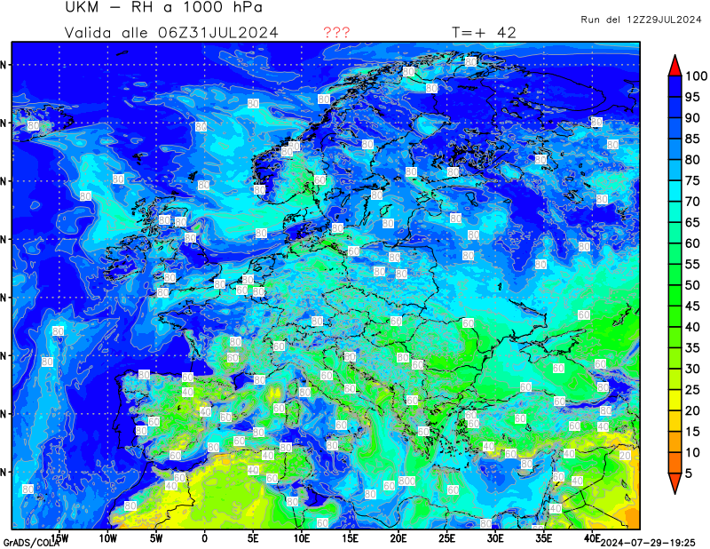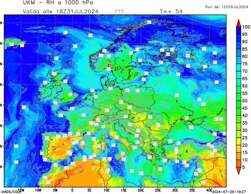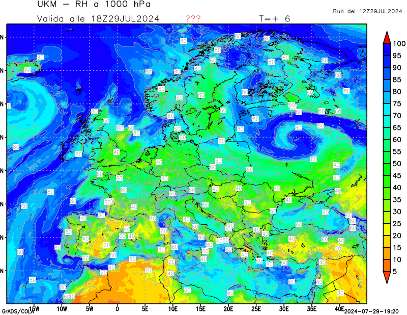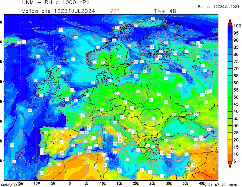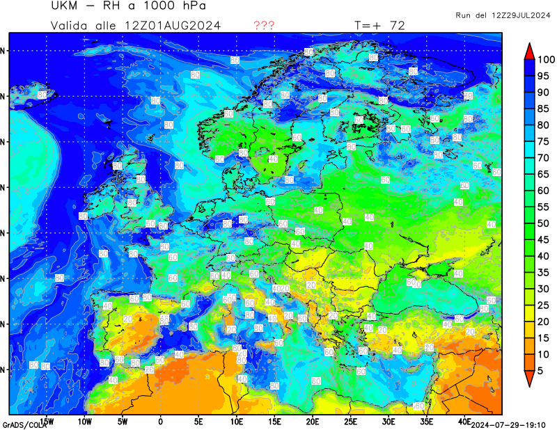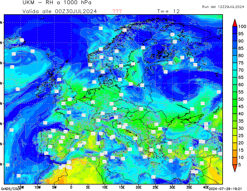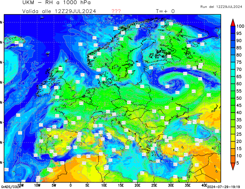 1000 hPa, umidità relativa