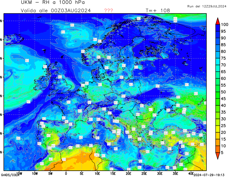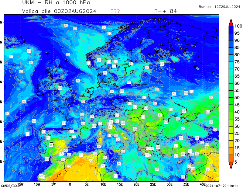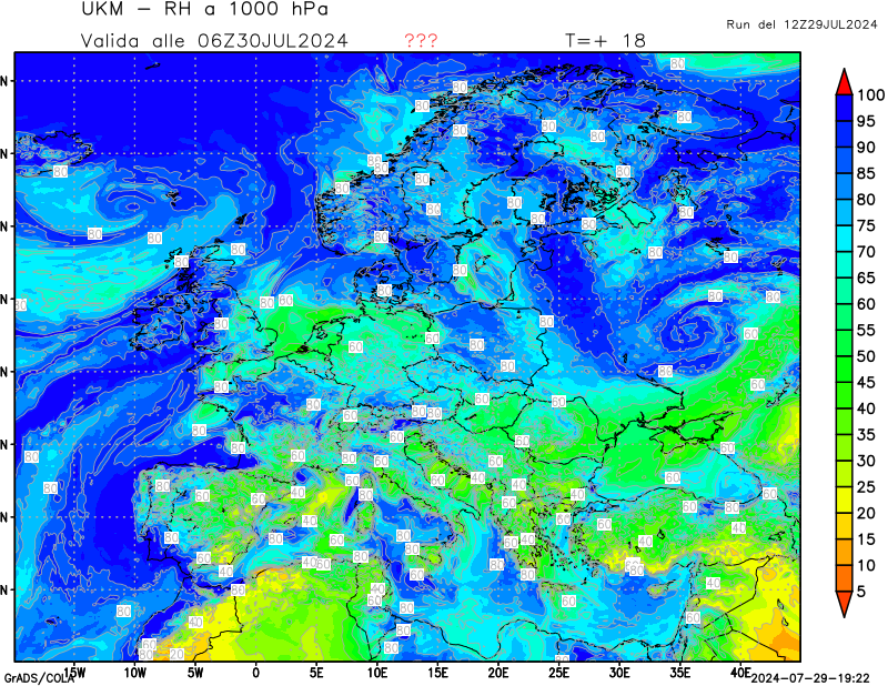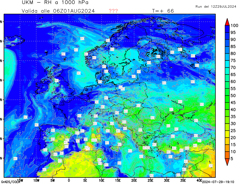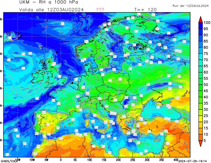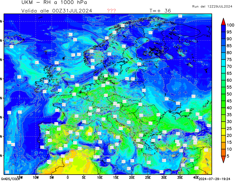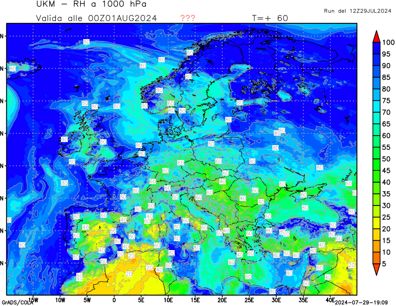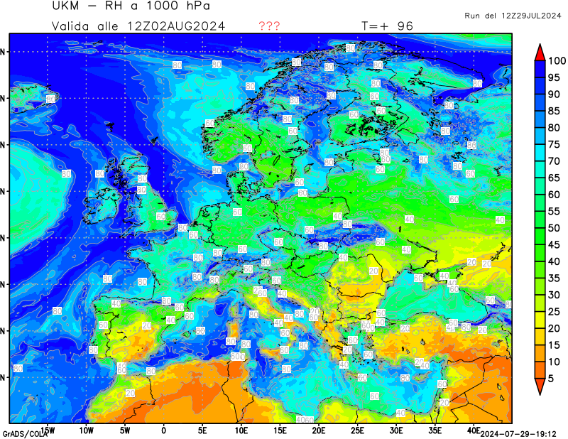 1000 hPa, umidità relativa