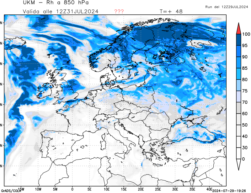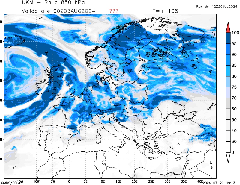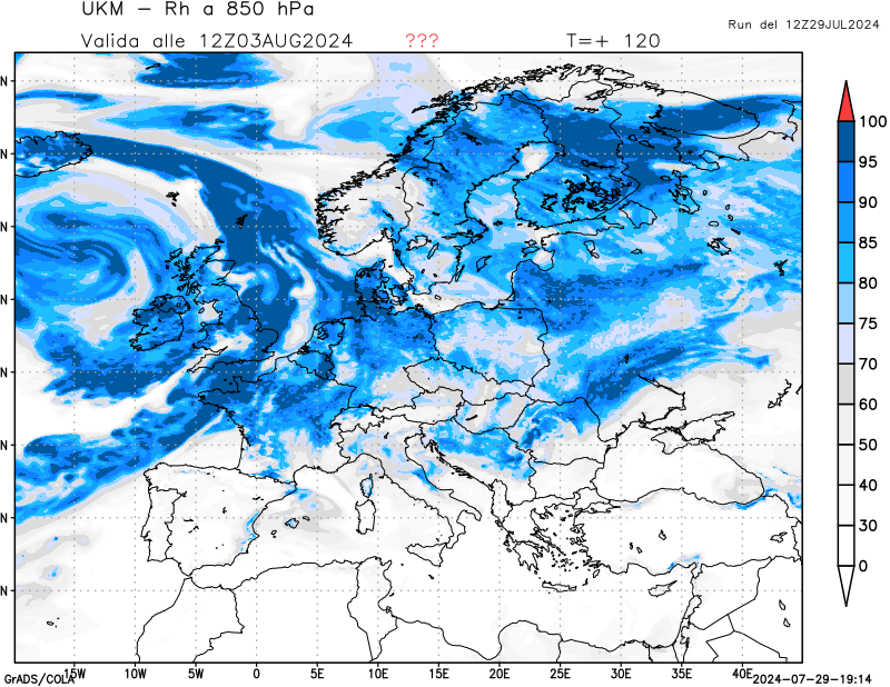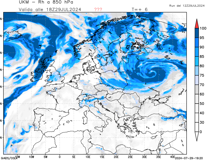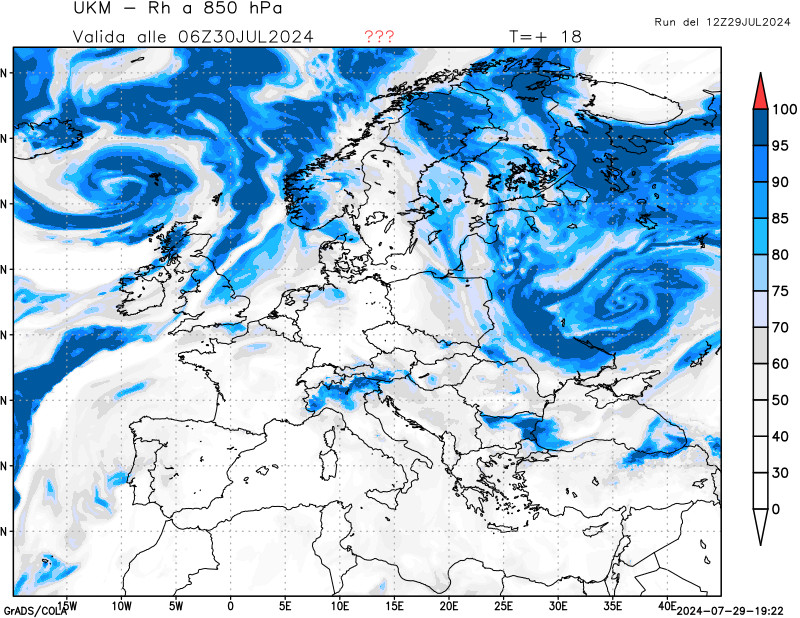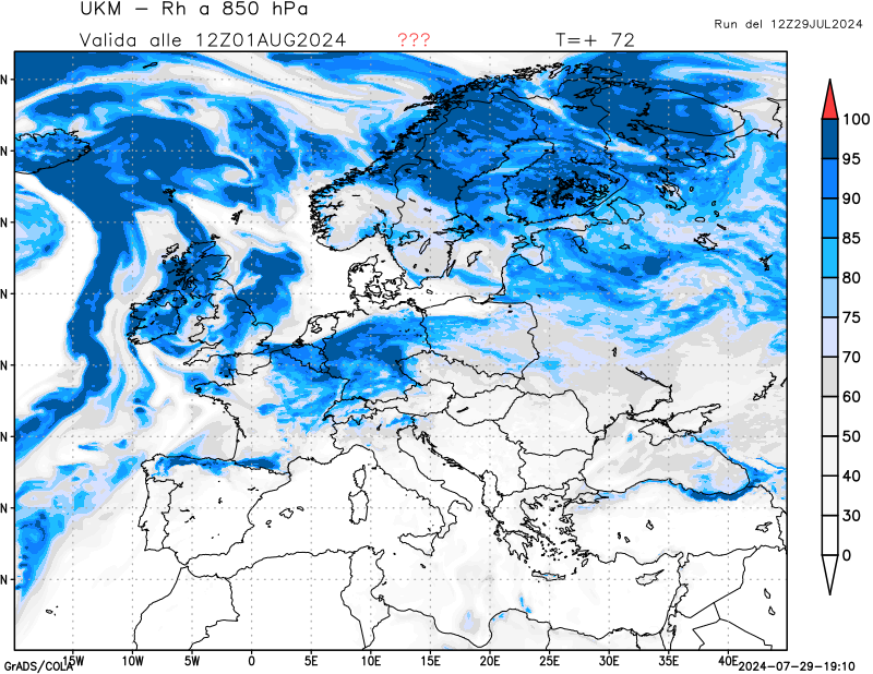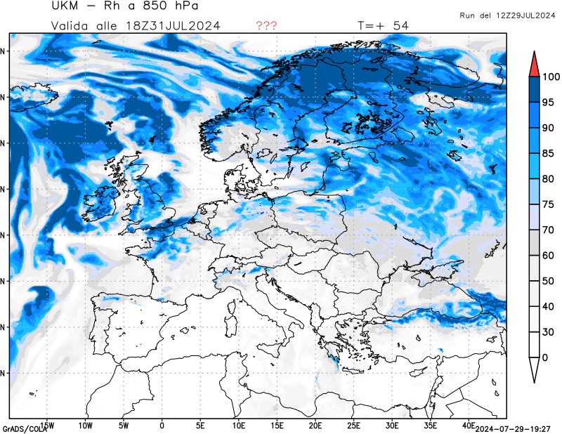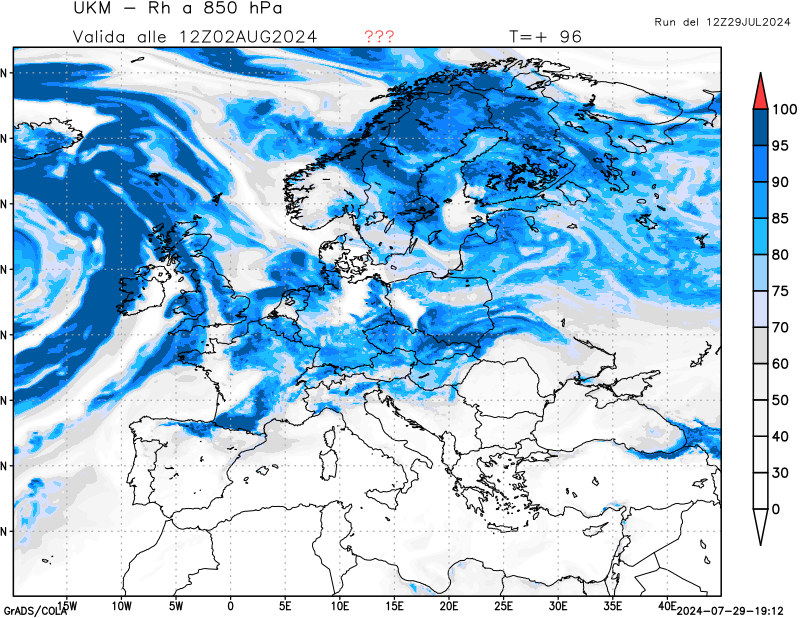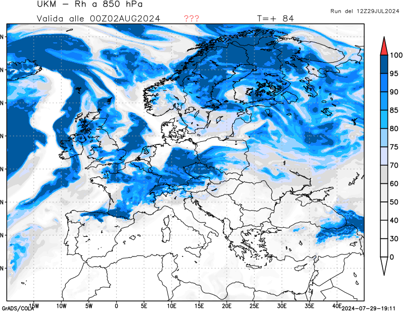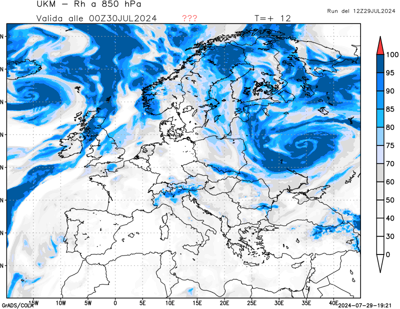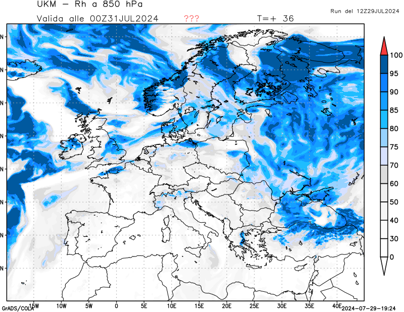 850 hPa, umidità relativa