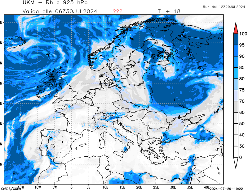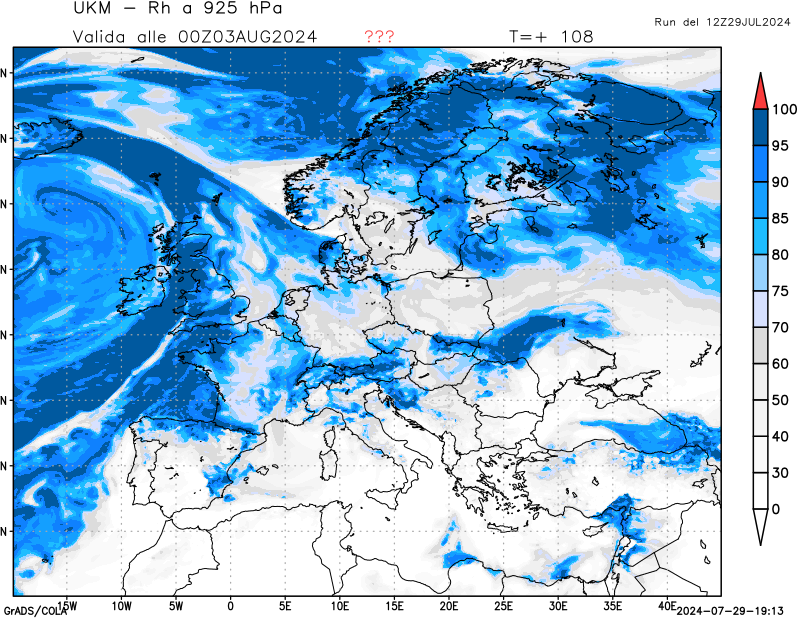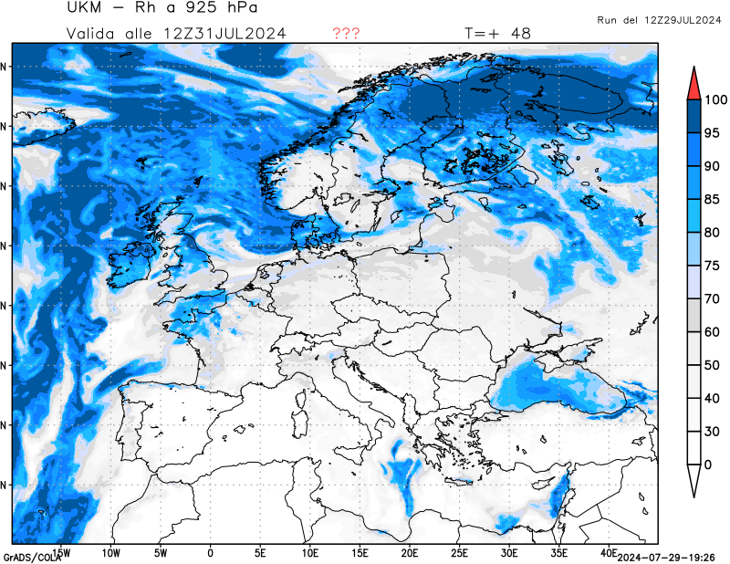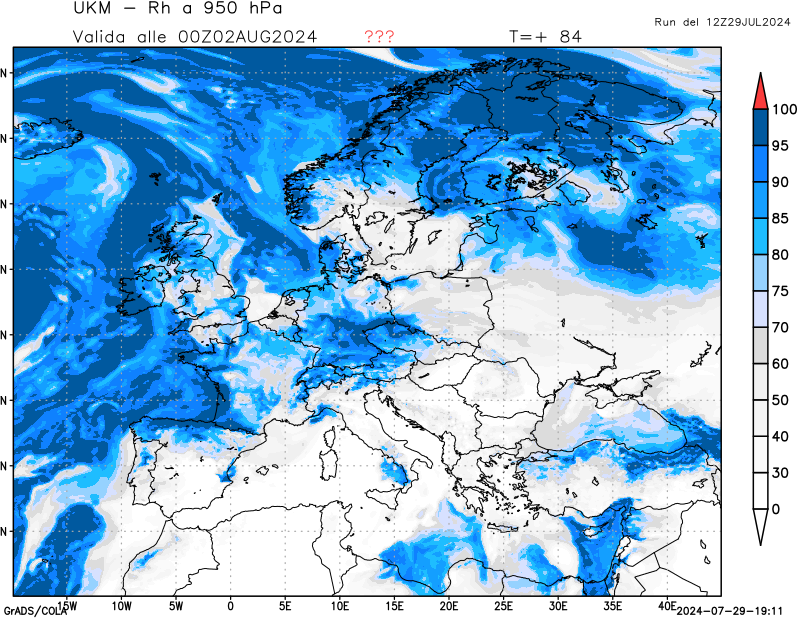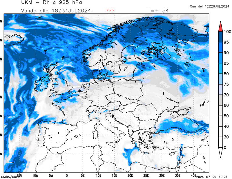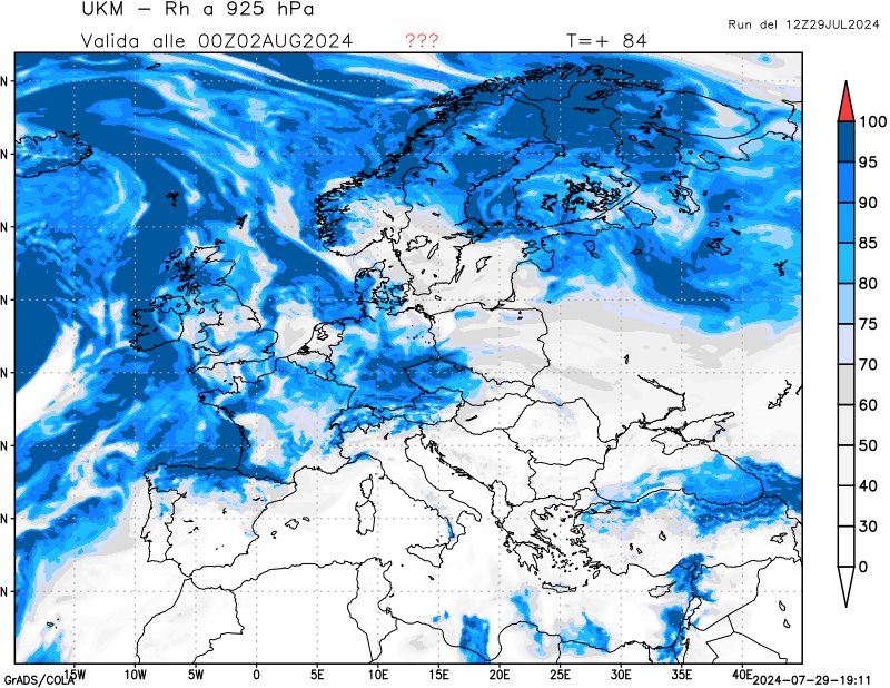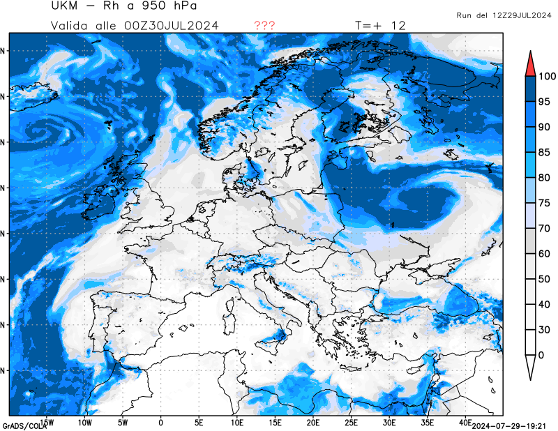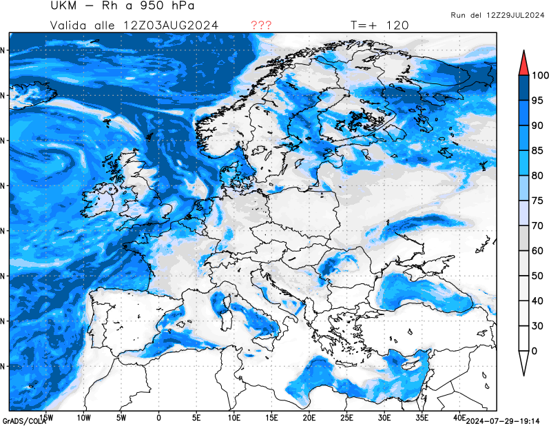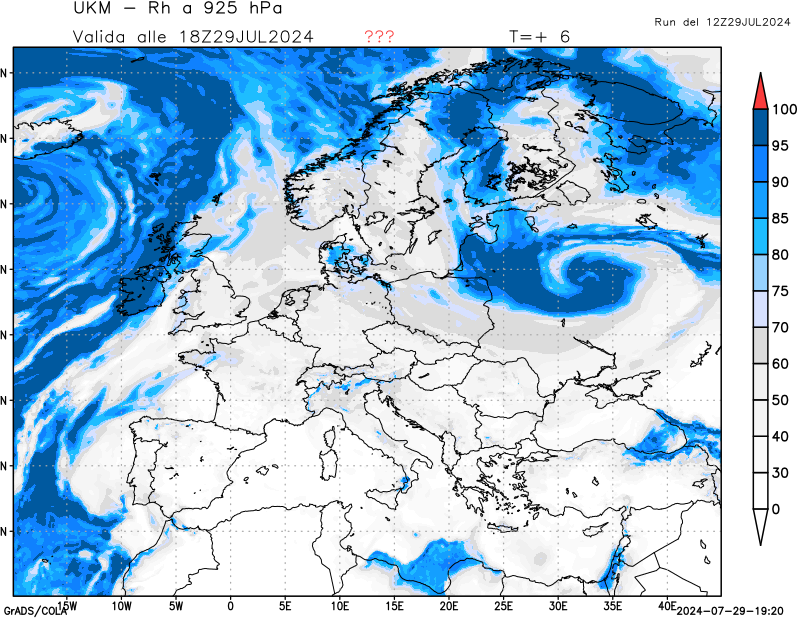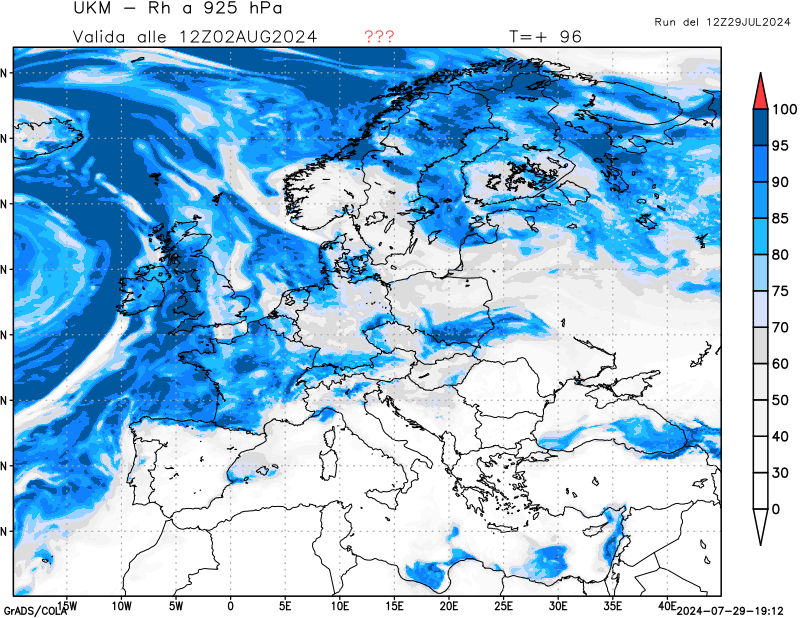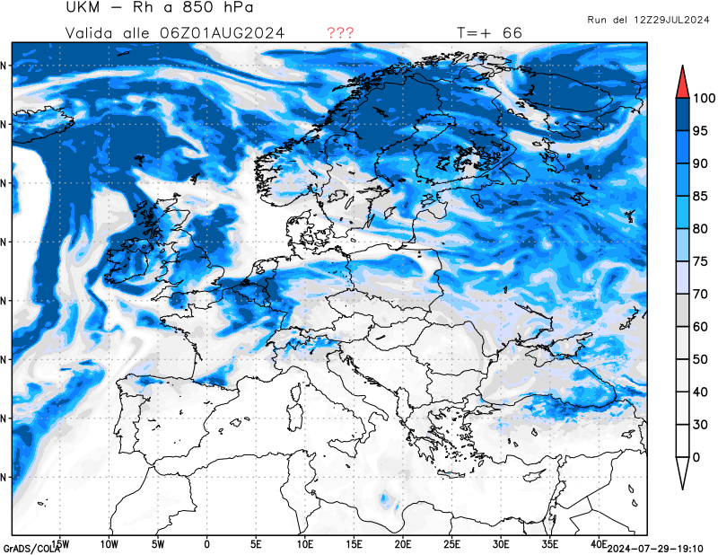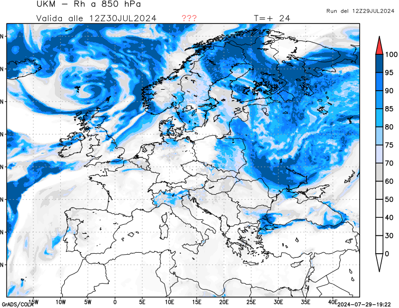 850 hPa, umidità relativa