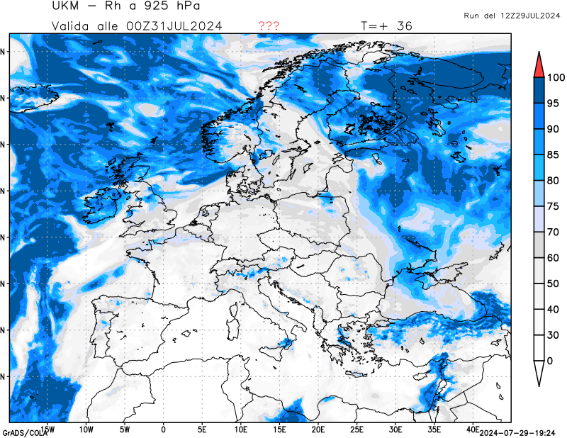 925 hPa, umidità relativa