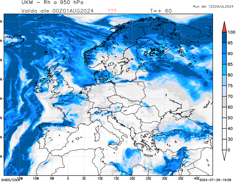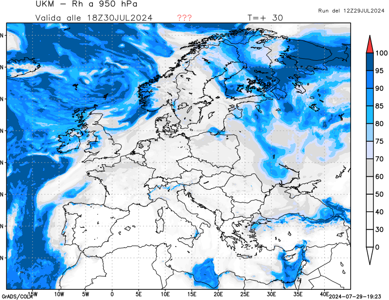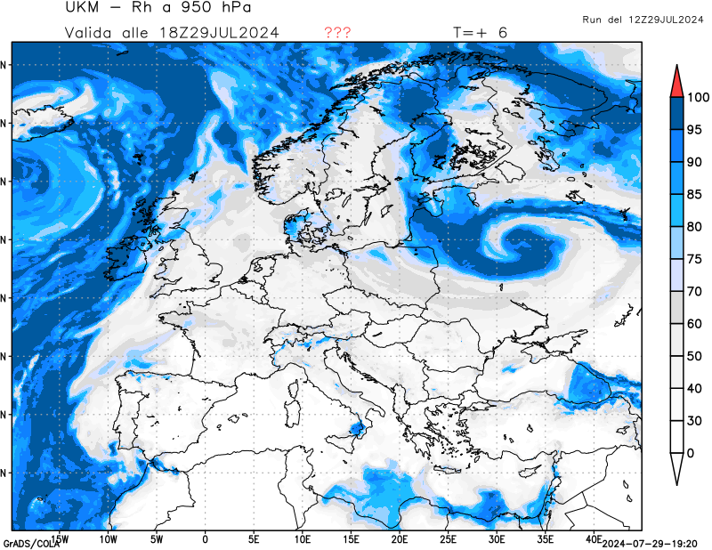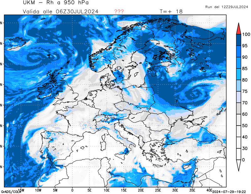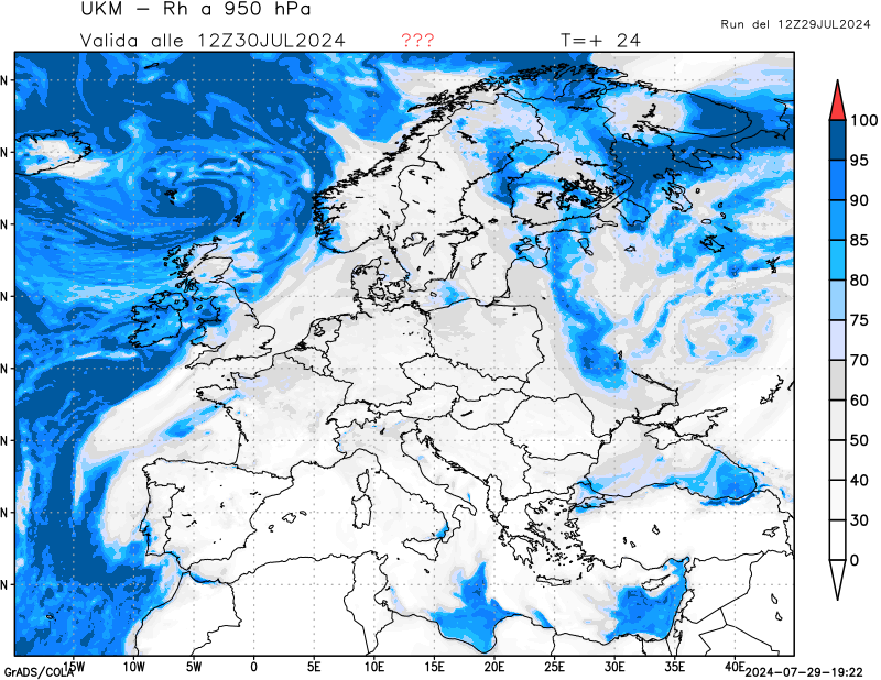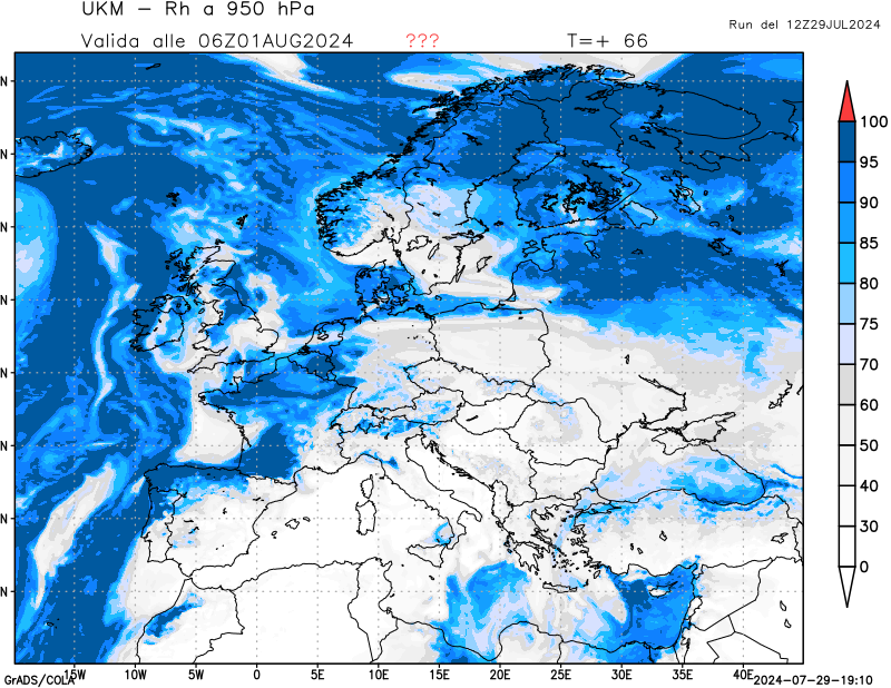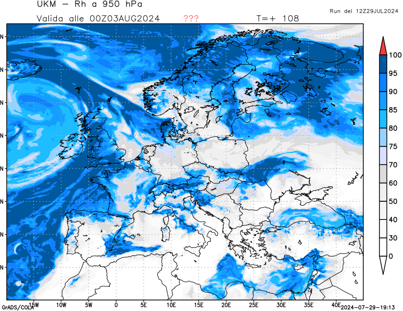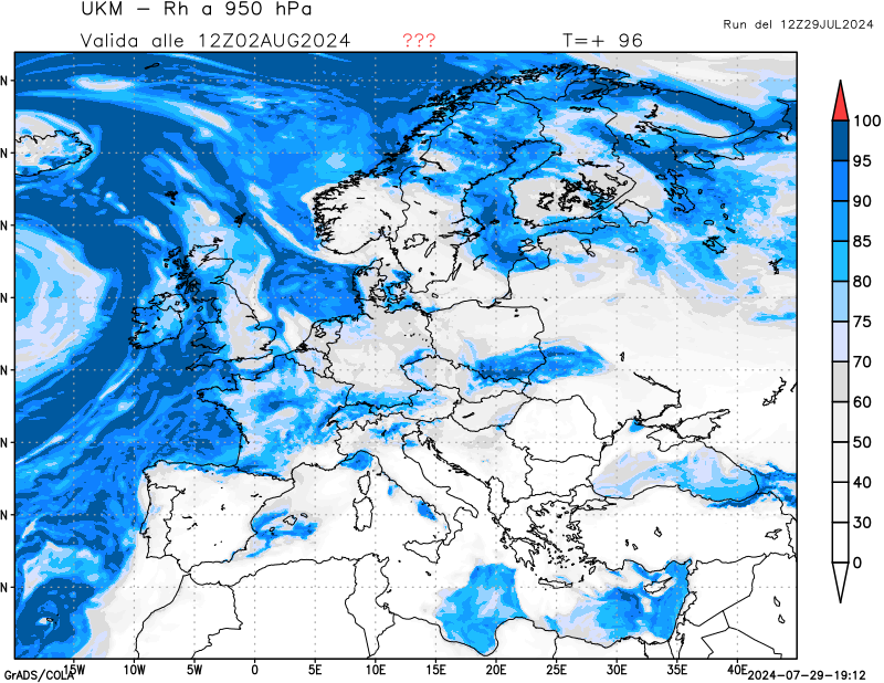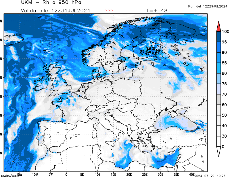 950 hPa, umidità relativa