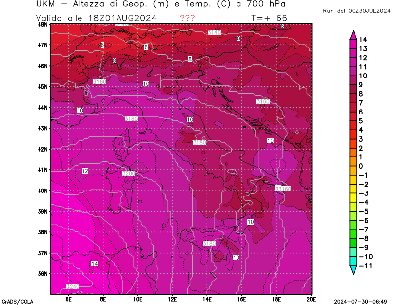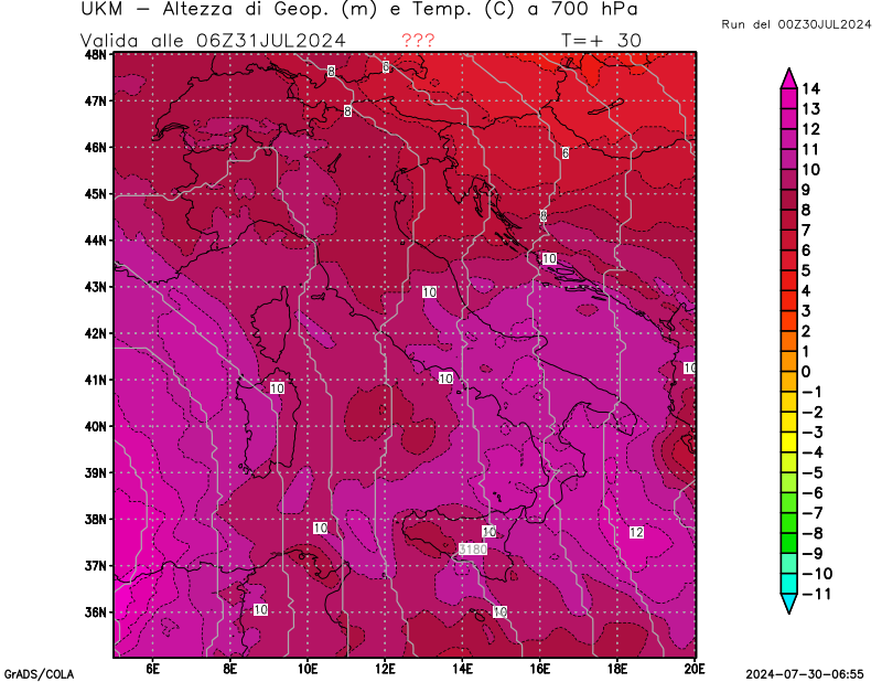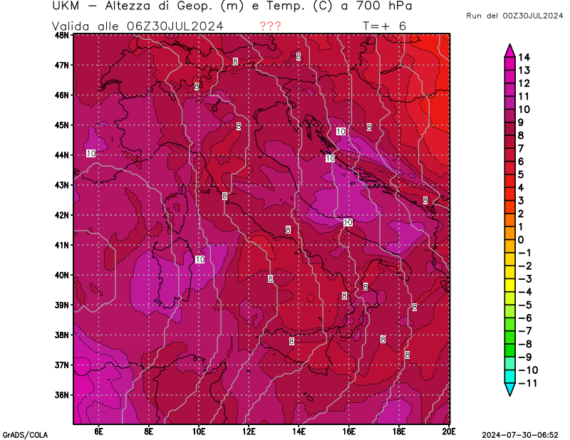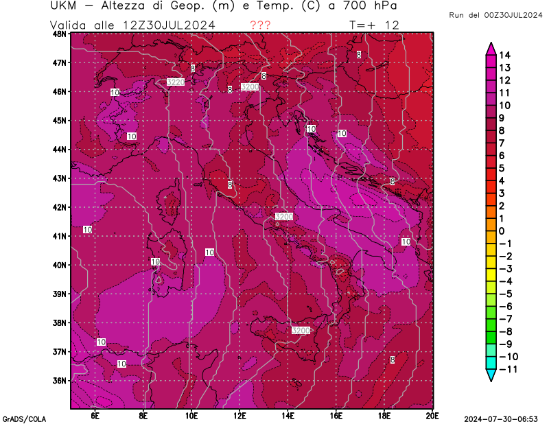 700 hPa, geopotenziale e temperatura