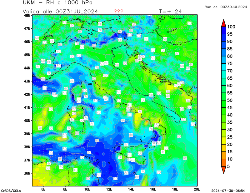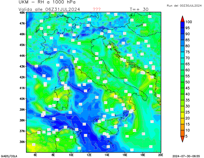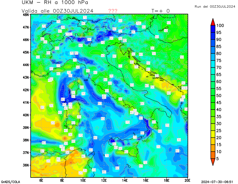 1000 hPa, umidità relativa
