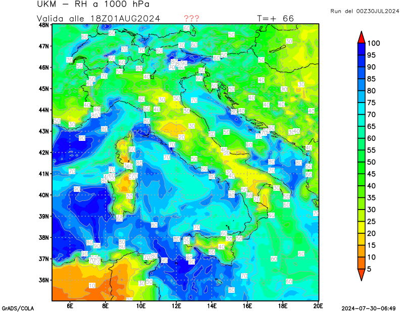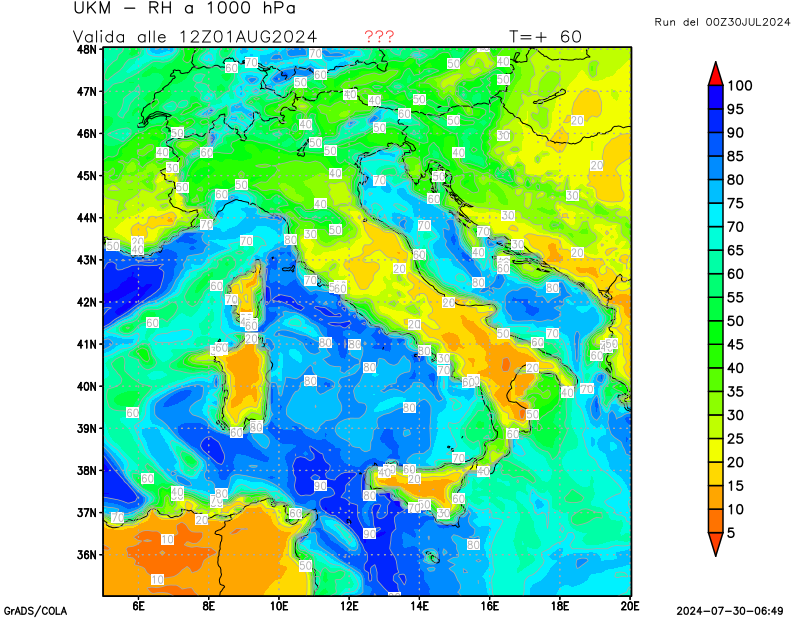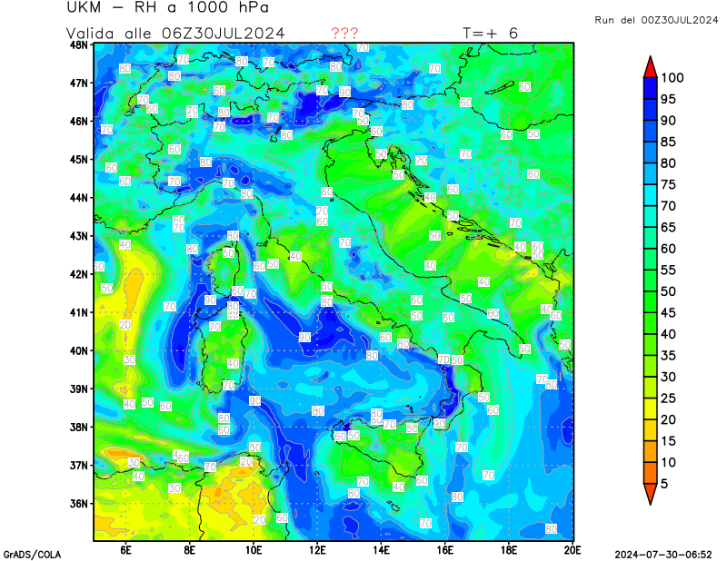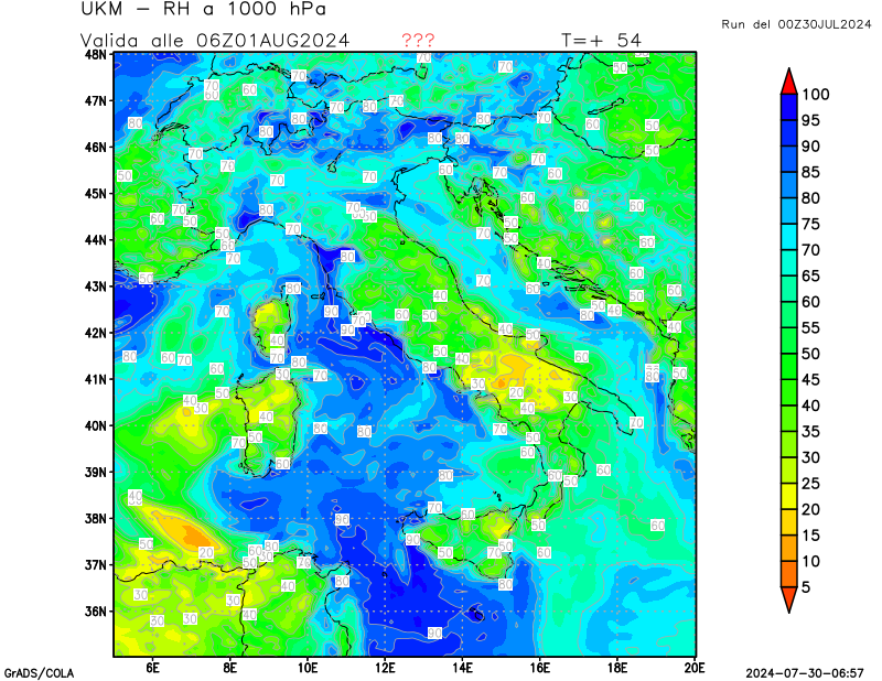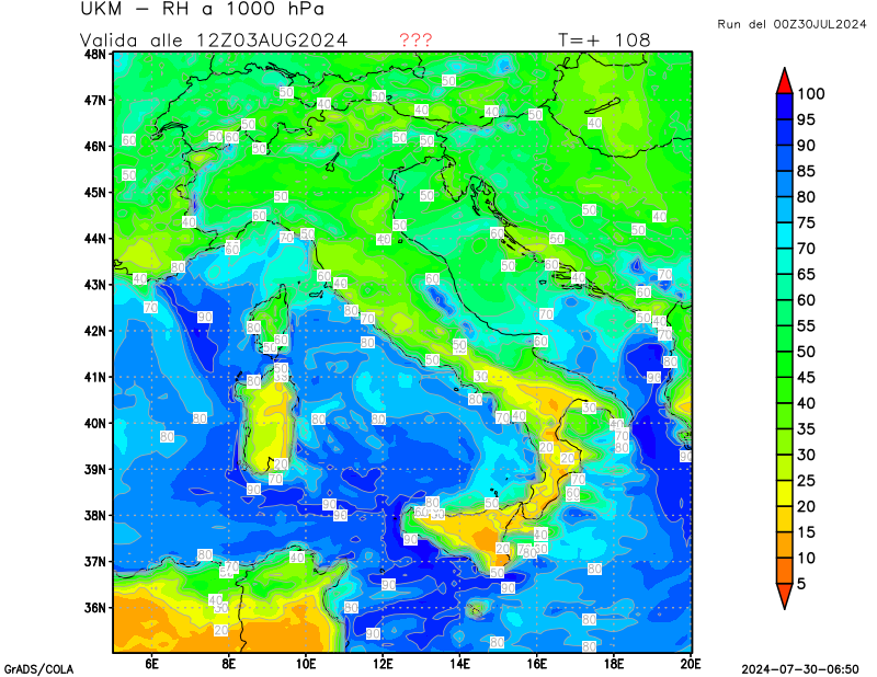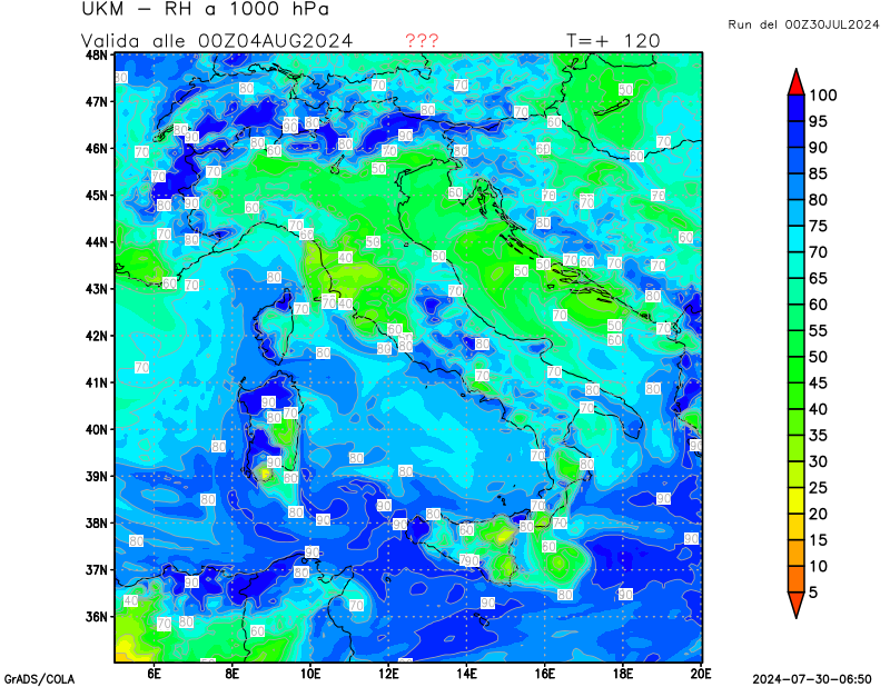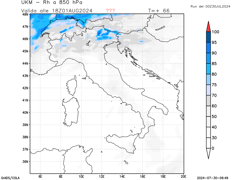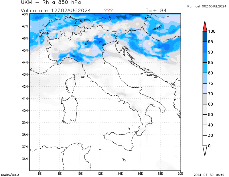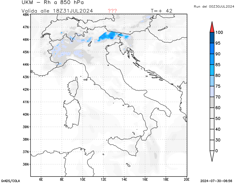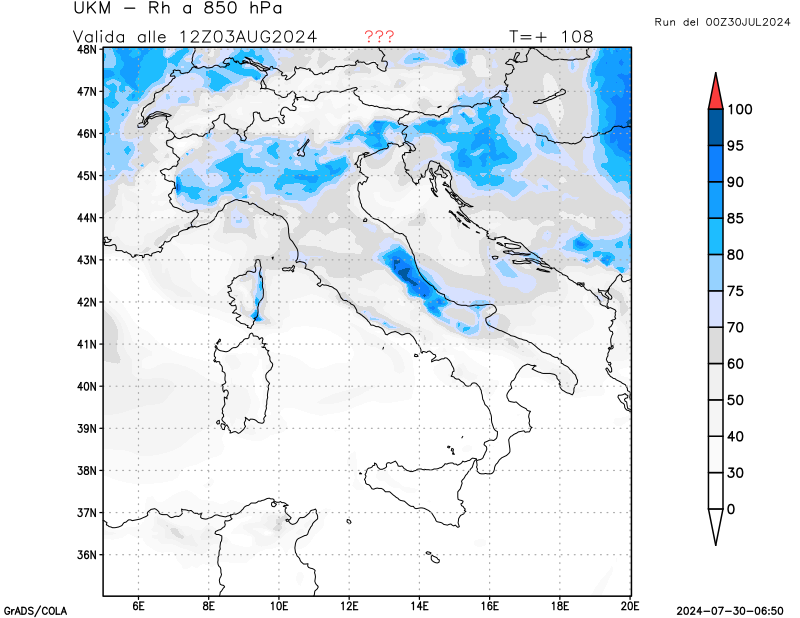 850 hPa, umidità relativa