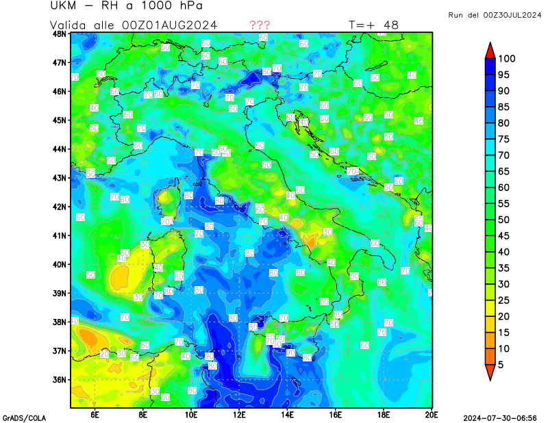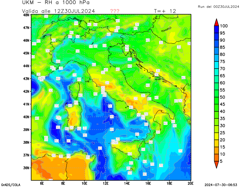 700 hPa, umidità relativa