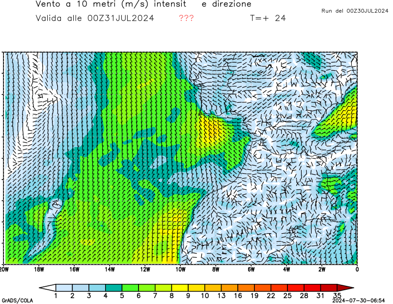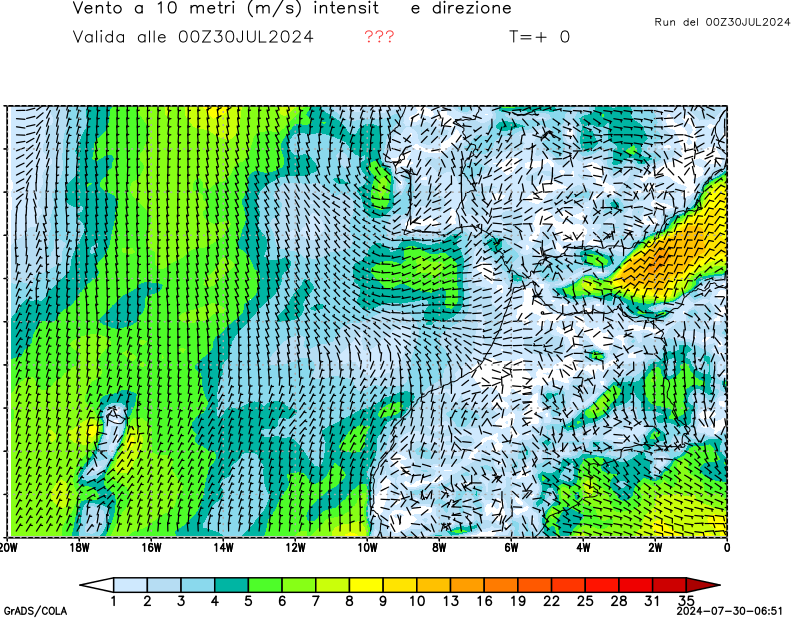 Vento a 10 metri - zoom Stretto di Gibilterra e Madeira