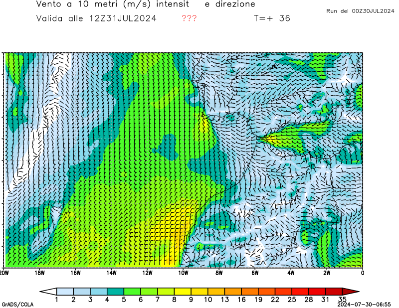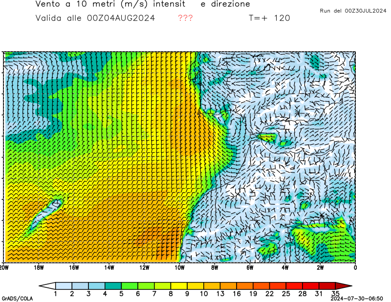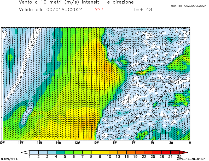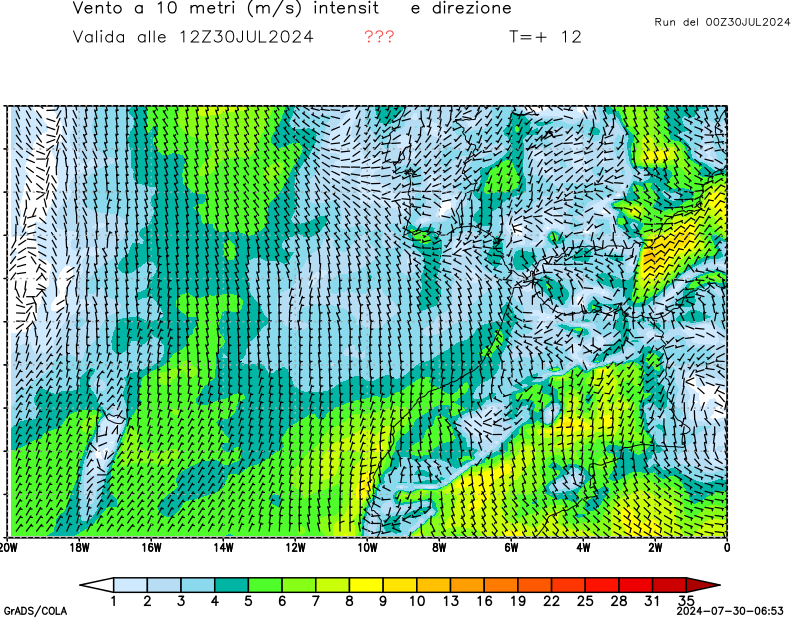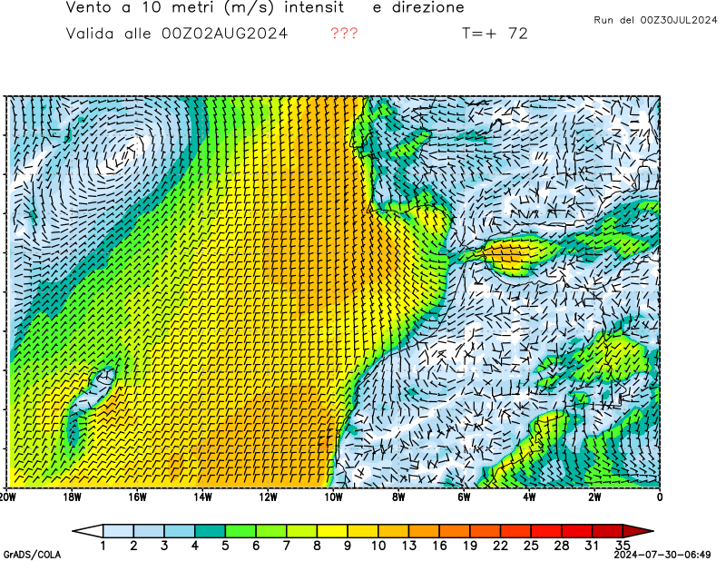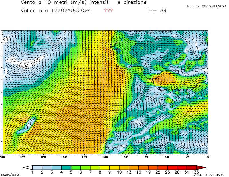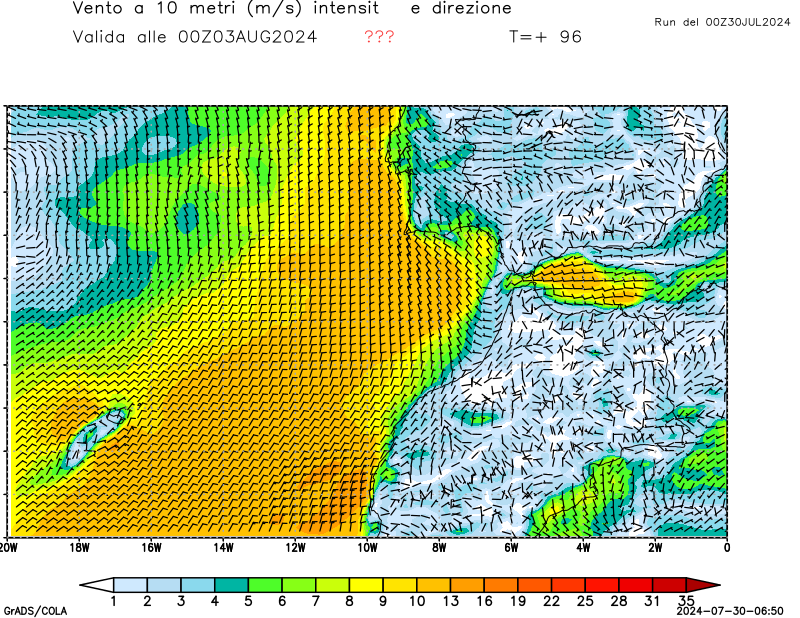 Vento a 10 metri - zoom Italia