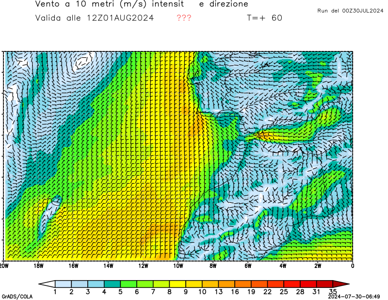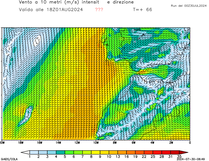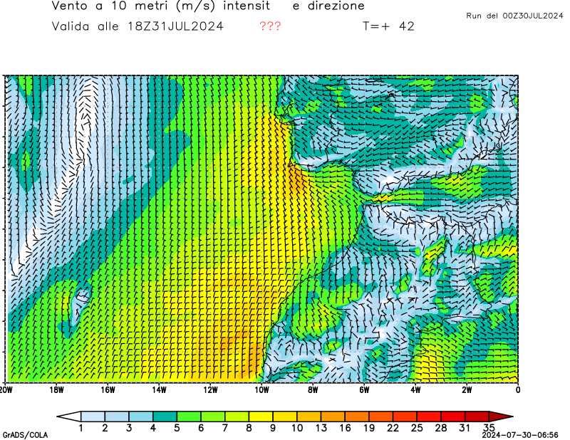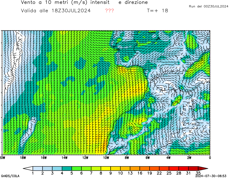 Vento a 10 metri - zoom Mediterraneo occidentale