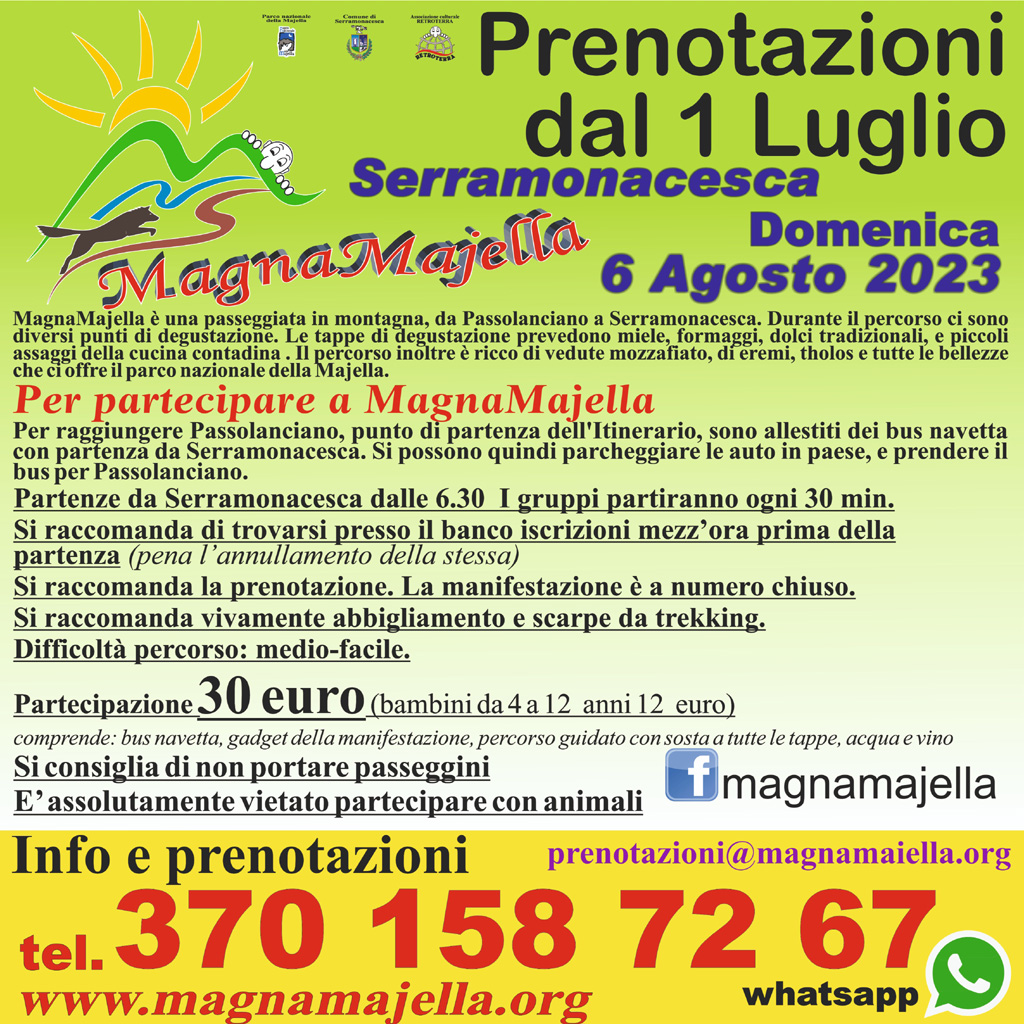 della partenza, (pena l'annullamento della stessa). La manifestazione è a numero chiuso. Si raccomanda vivamente abbigliamento e scarpe da trekking.