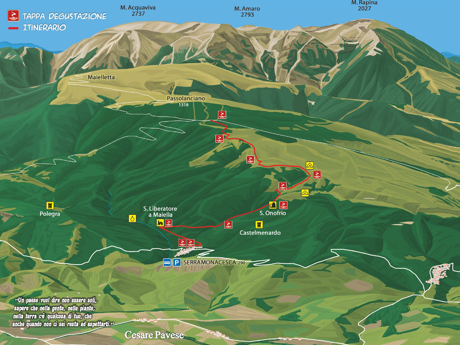 Passolanciano to Serramonacesca. The walk foresees different points where